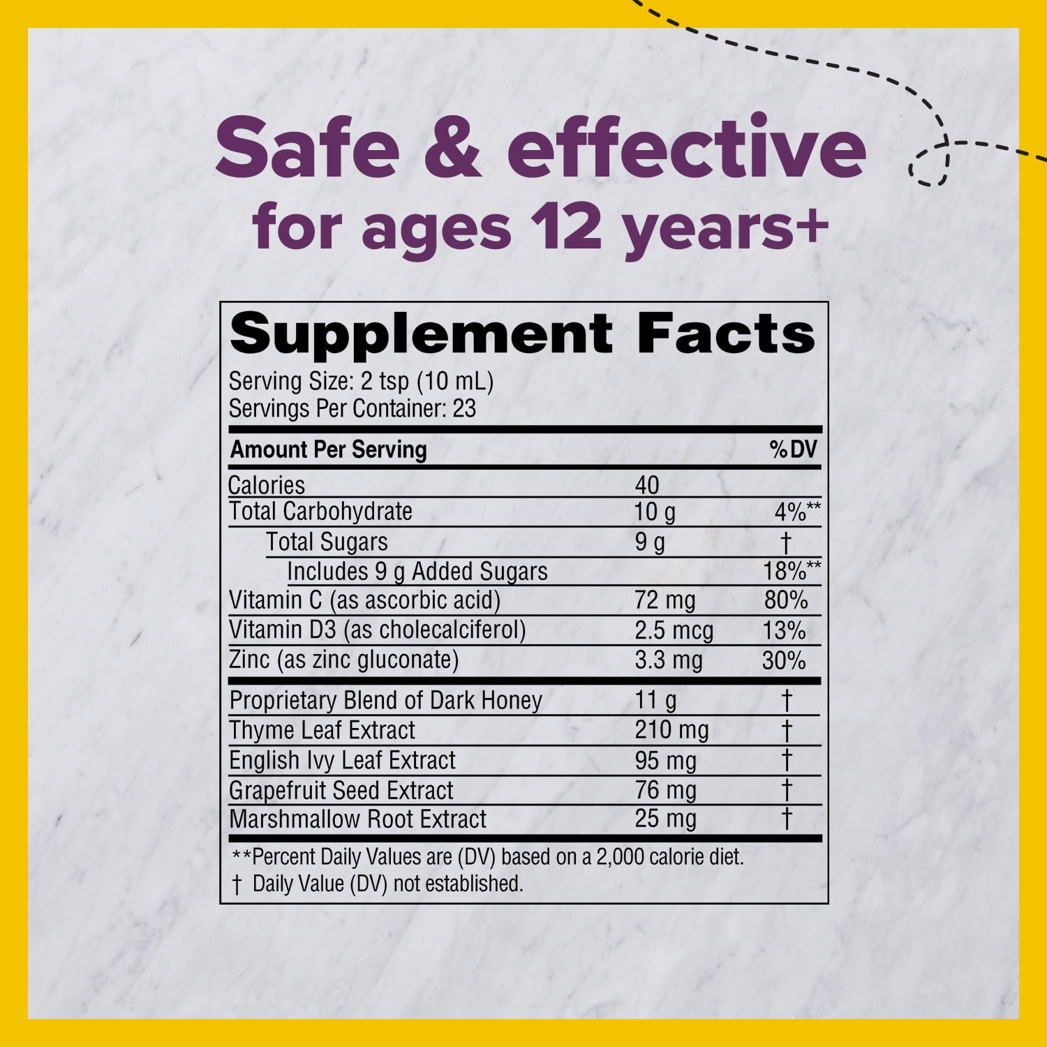 - Complete formula contains our propriety dark honey blend & real elderberry