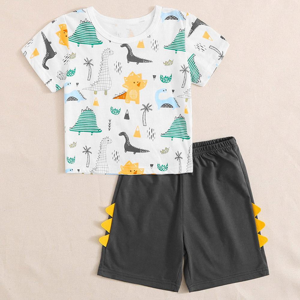 Luxsea Summer Boys Printed Sportswear Cotton Homewear Set Top + Shorts White, 2 Pack 2-9T