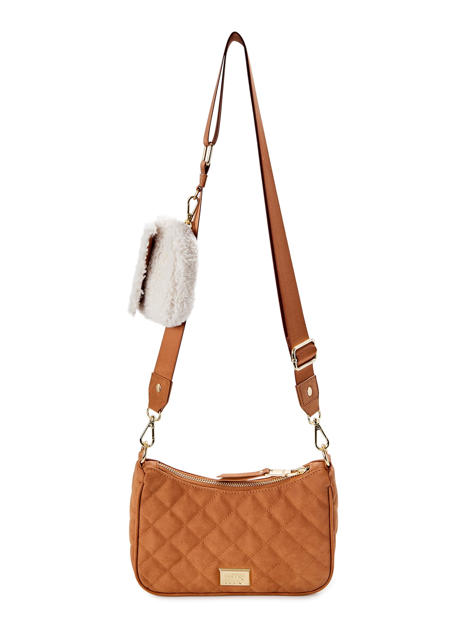 Madden NYC Women’s Quilted Crossbody Bag with Faux Sherpa Pouch
