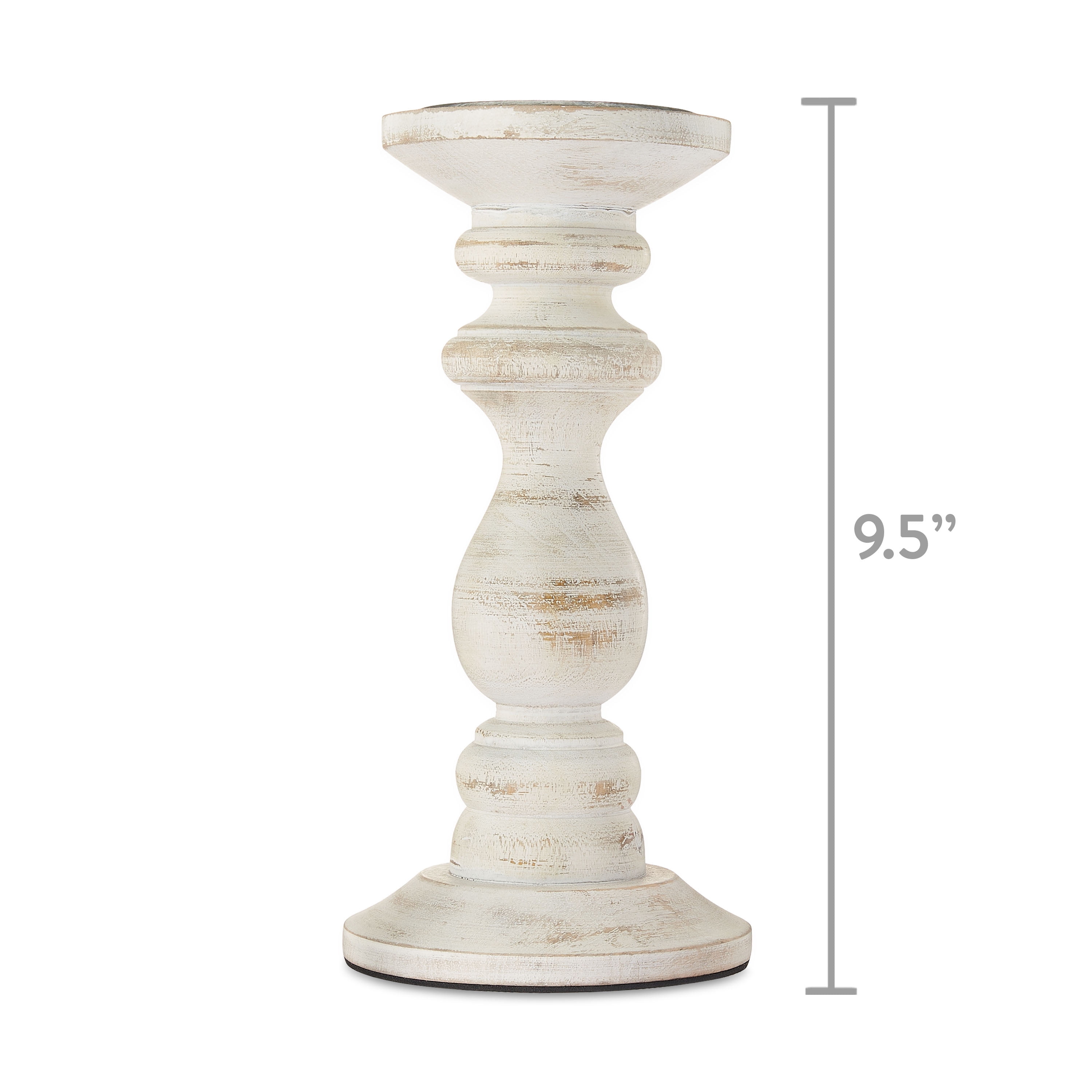 Way To Celebrate Whitewash Wood Home Decor Pillar Candle Holder, 10′