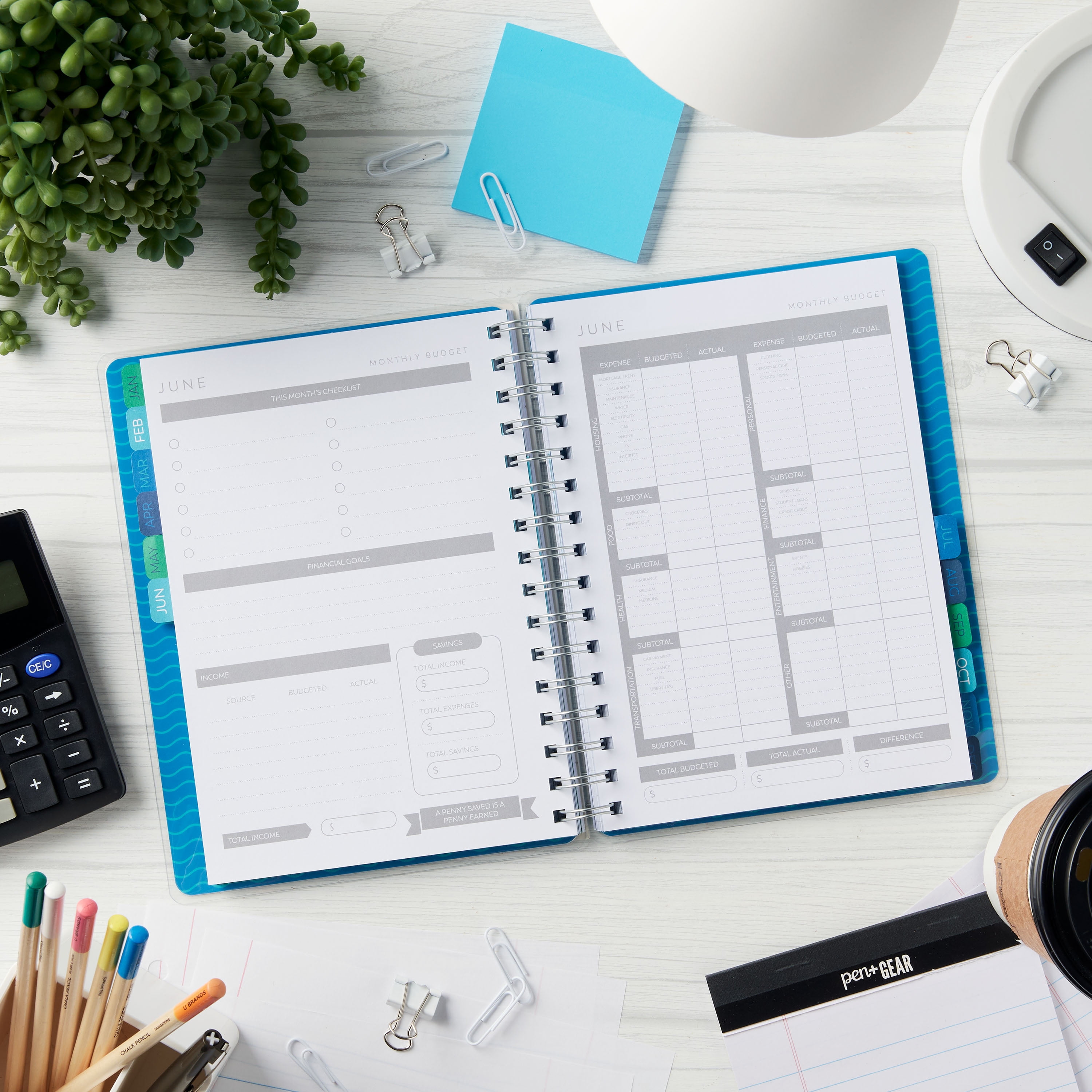 Pen+Gear 12-Month Budget Planner, January 2022-December 2022, Blue