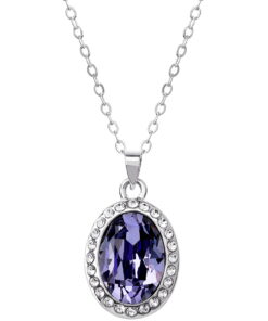 Fine Silver Plated Oval Purple Crystal Pendant, 18′ + 2′ Chain