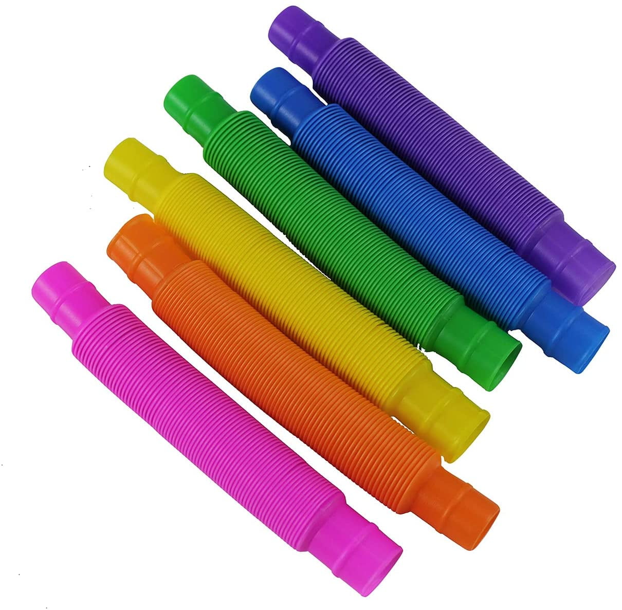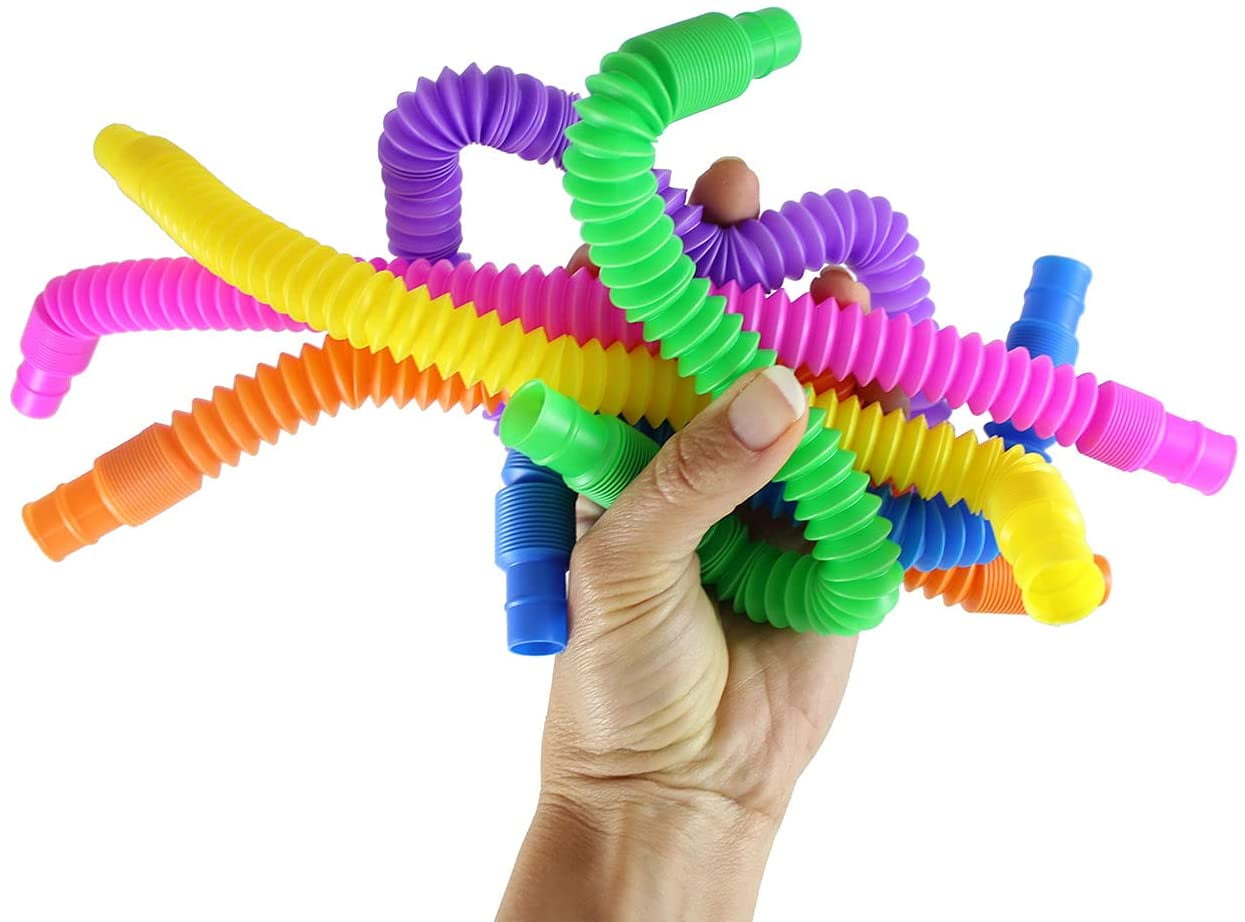 - SET OF 6 TUBES – (2 PACKS OF 3). All 6 Color Tubes. These colorful tubes are a fun, open-ended and interactive toy for children. The tubes pop open and are flexible. Kids can stretch, bend and build with them in a variety of ways.