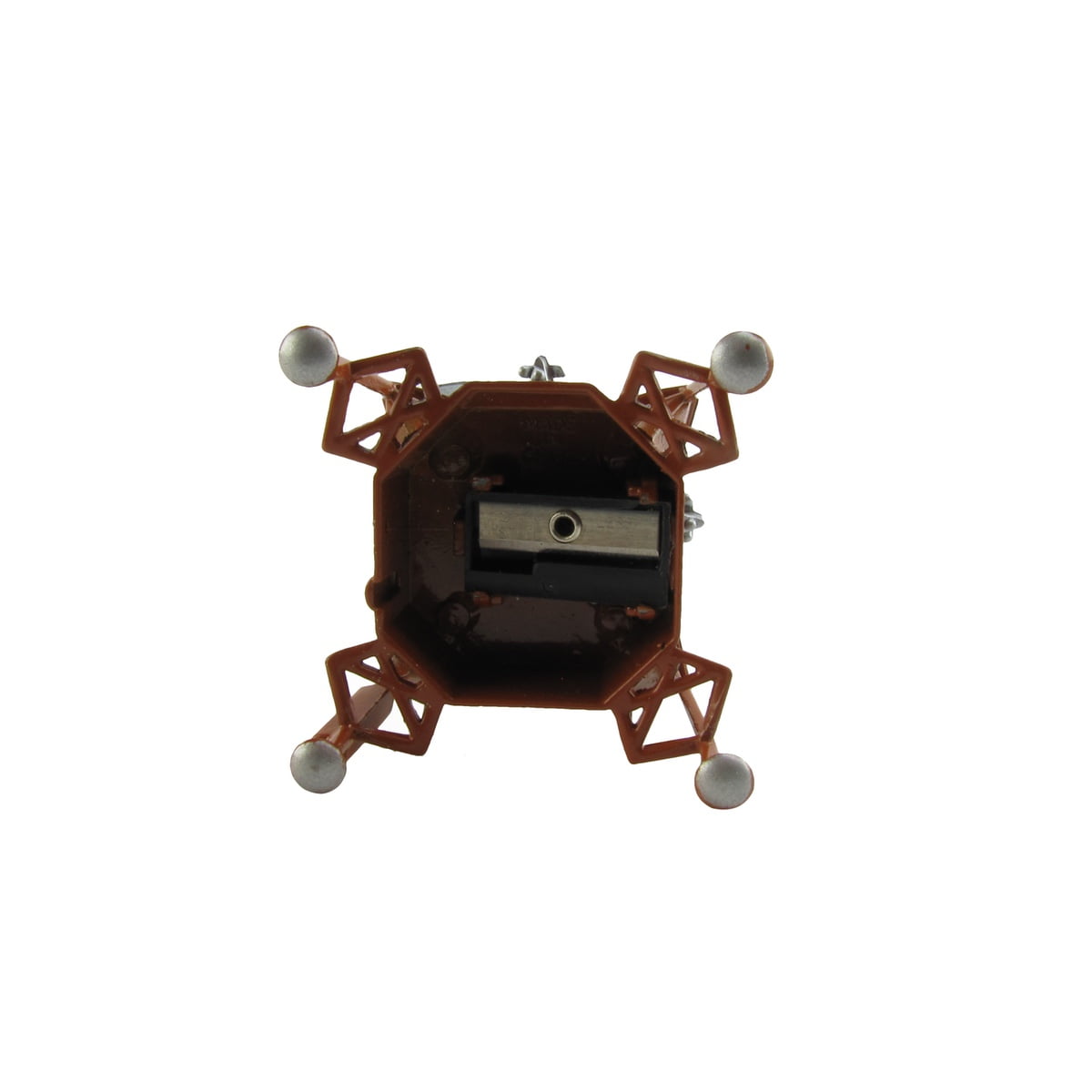 Relive the fifth and final manned mission to the Moon with this Apollo 16 miniature lunar lander module pencil sharpener. Silver and copper in color, the miniature NASA lunar lander is accurately modeled after the Lunar Module Orion used in the Apollo 16 mission launched on April 19th, 1972. This miniature lunar module makes a fantastic gift for any fan of space exploration. The back of the module houses a fully functional pencil sharpener, making this model a great gift for an astronomy teacher, or a unique addition to a pencil sharpener collection. The miniature model measures 2" long, 2" wide, and 2 1/4" tall. All of our pencil sharpeners ship brand new in manufacturer’s packaging with our 100% Customer Satisfaction Guarantee.