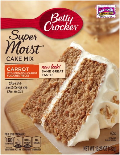 Betty Crocker Super Moist Carrot Cake Mix has pudding in the mix! Thank you for welcoming us into your home. We hope what’s inside this box helps you bring more love to your table. Cordially Yours, Betty Crocker.Betty Crocker Super Moist Carrot Cake Mix (Pack of 2)