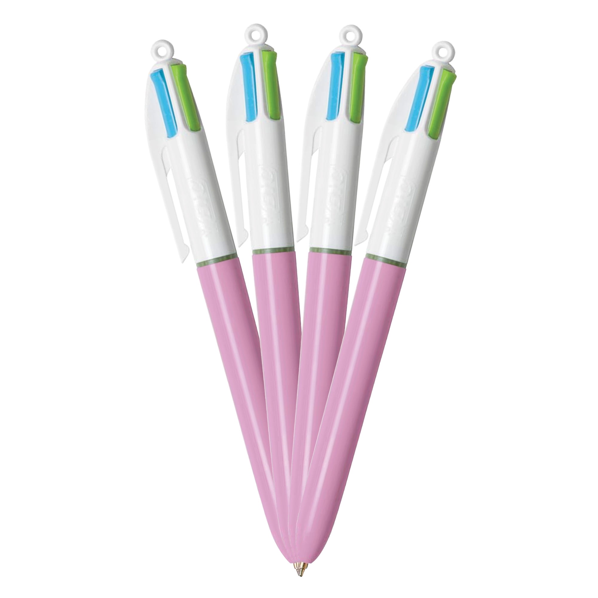 Have fun expressing yourself with the world-renowned BIC 4-Color Fashion Ball Pen! Offering the convenience of four different ink colors (pink, purple, turquoise, and lime green) in one ballpoint pen, this versatile pen has a 1.0mm medium point that is perfect for everyday writing activities. The convenient retractable design makes it easy to switch between colors, making it a great choice to organize notes, doodle, or record data in different colors. This pack offers four BIC 4-Color Fashion retractable ballpoint pens with pretty light blue barrels and long-lasting ink.