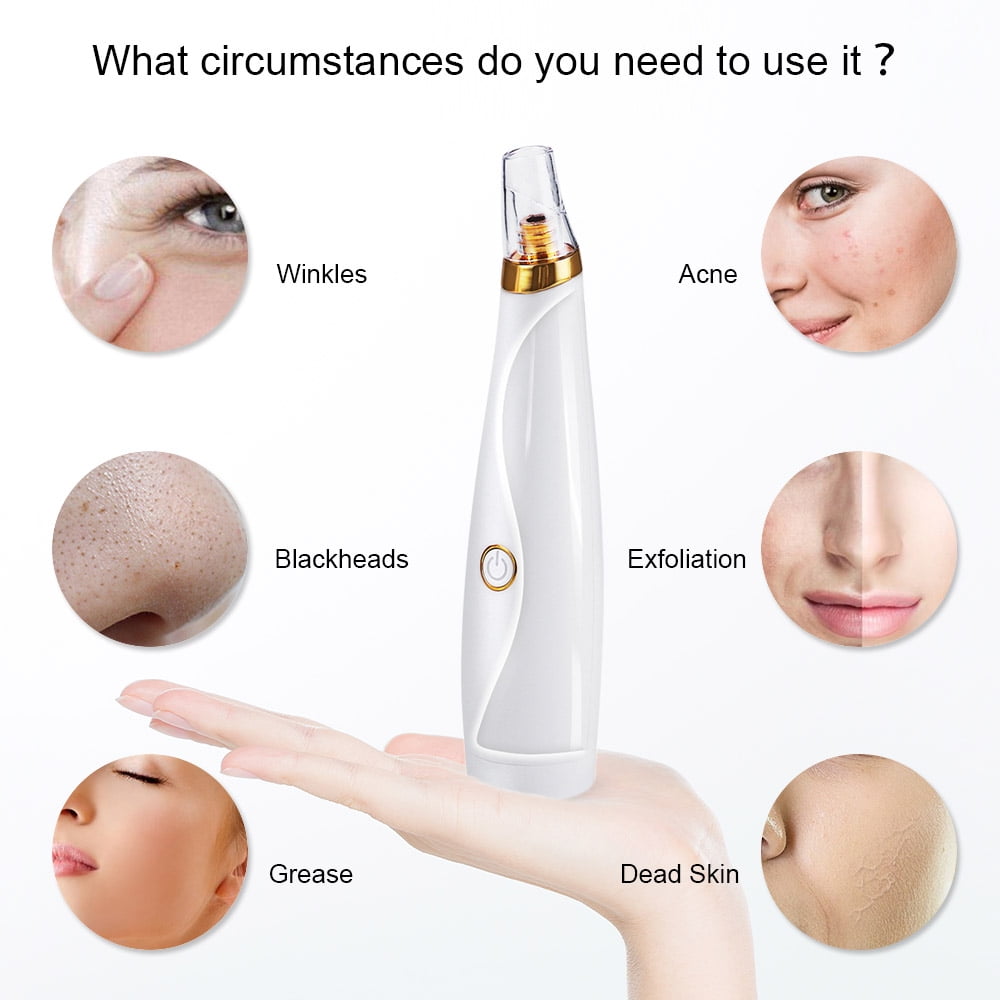 - The pimple extractor pr0vides 3 different functions of suction heads which can be switched for different skin textures: deeply clean up the blackheds, rem0ve residual grease and dirt, smooth wrinkles, and pr0m0te facial tiny circulation.