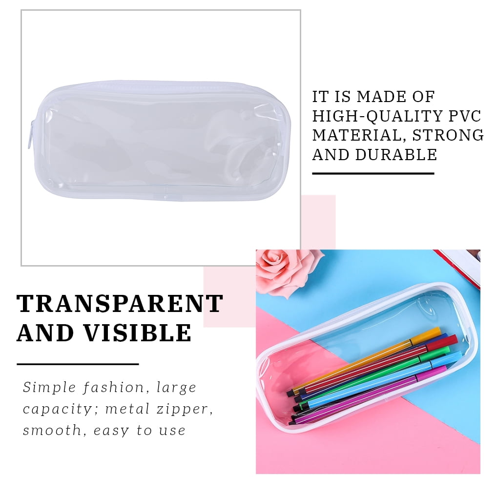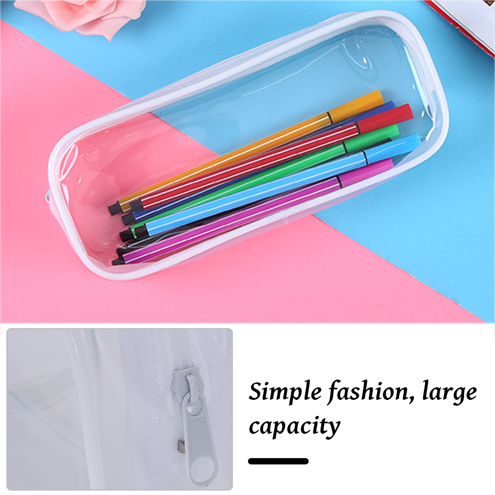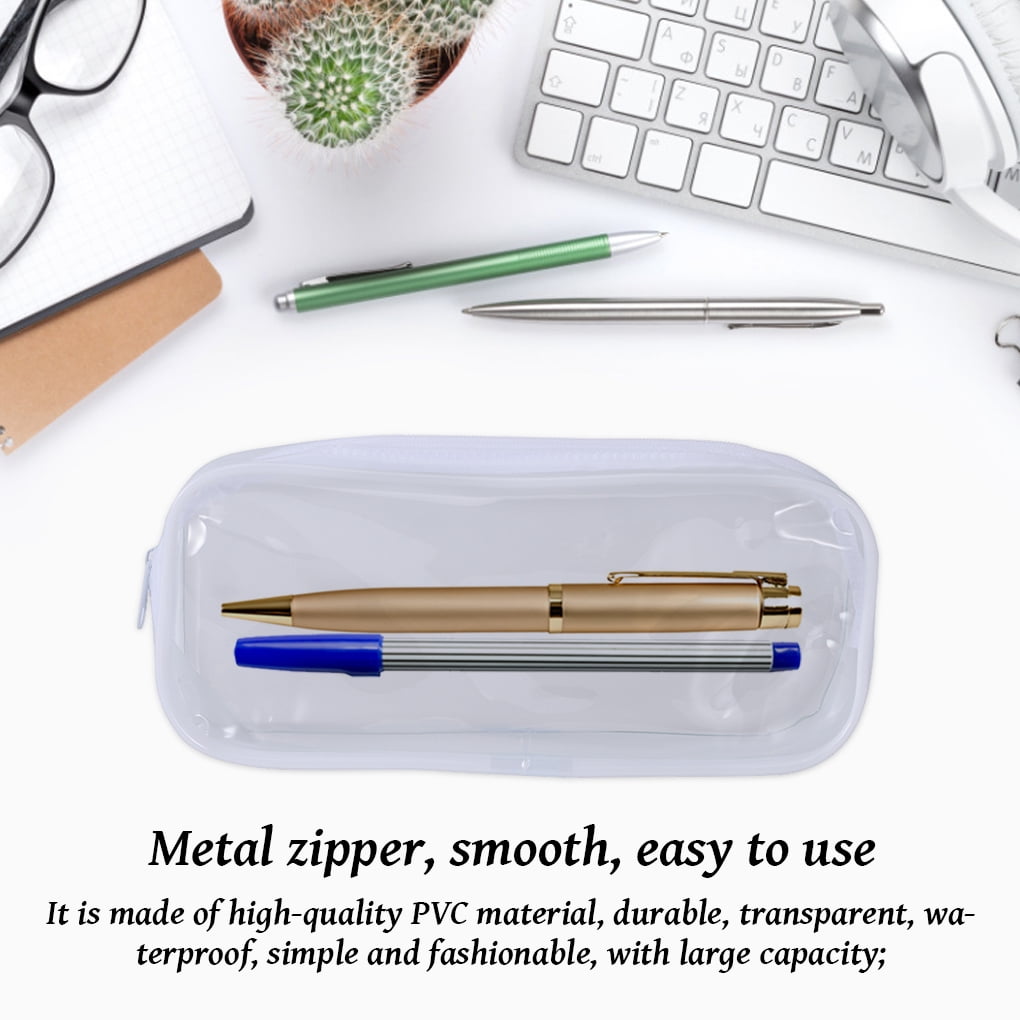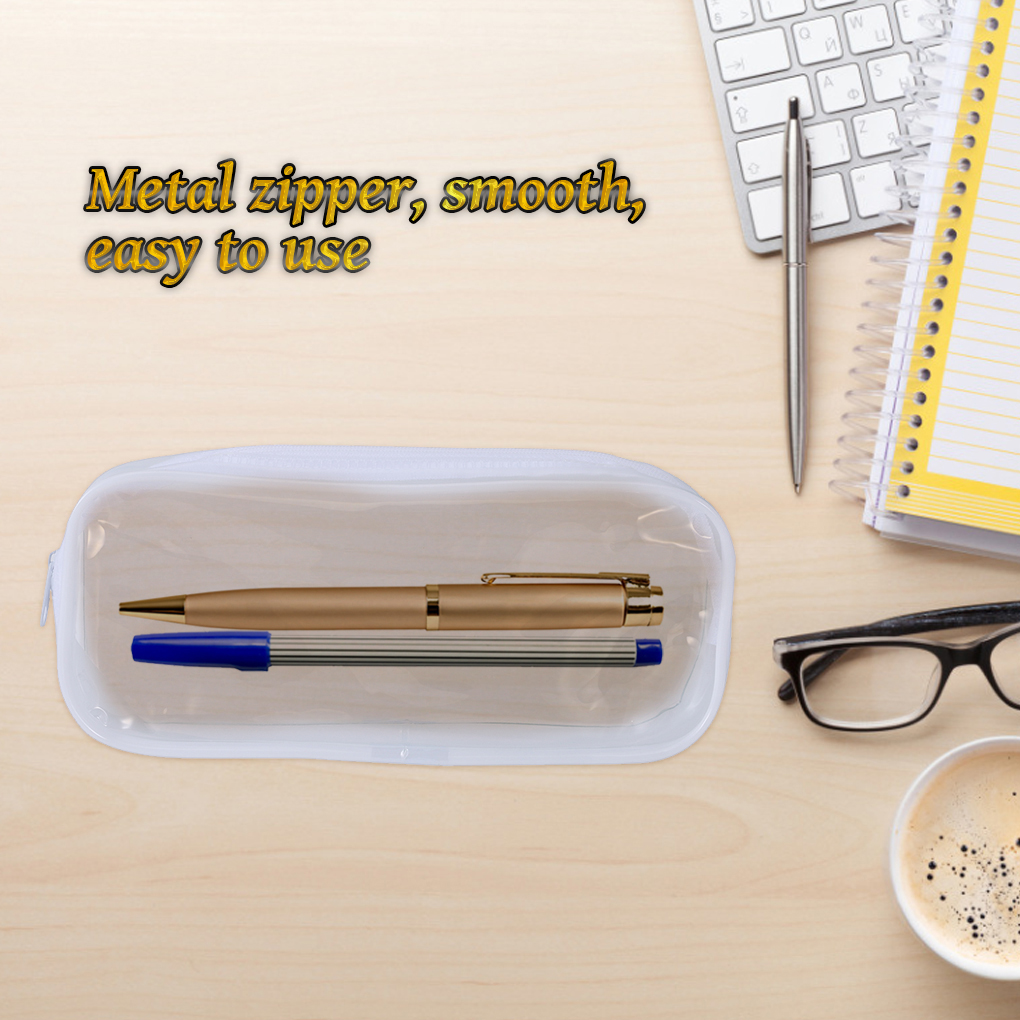 Clear Pencil Case PVC Zipper Pen Bag Portable School Student Stationery Storage Pouch, White