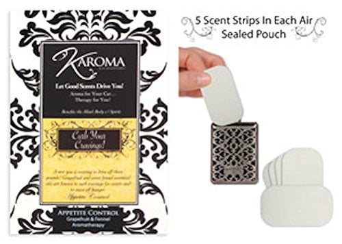 Karomatherapy-Refill Pads Appetite ControlGrapefruit & Fennel Aromatherapy.A new you is waiting to drive off those pounds! Grapefruit and sweet fennel essential oils are known to curb cravings for sweets and to stave off hunger. Experience the benefits of Aromatherapy on the road! INCLUDES: 5 aromatherapy refill pads. Use with the Karoma Car Air Freshener Diffuser. Suggested to replace scent cards every 2 weeks.5 aromatherapy refill pads