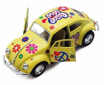 Kinsmart 5′ 1967 VW Classic Beetle Peace Decals Diecast 1:32 Volkswagen Yellow