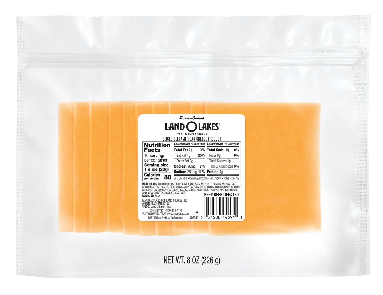 Make a delicious, authentic-tasting deli sandwich every time with Land O Lakes® Deli Sliced Yellow American Cheese. Our cheese is perfect for hoagies, heroes, subs, grinders – whatever you call your favorite deli sandwich! An excellent source of calcium for the whole family with 5g of protein per serving.