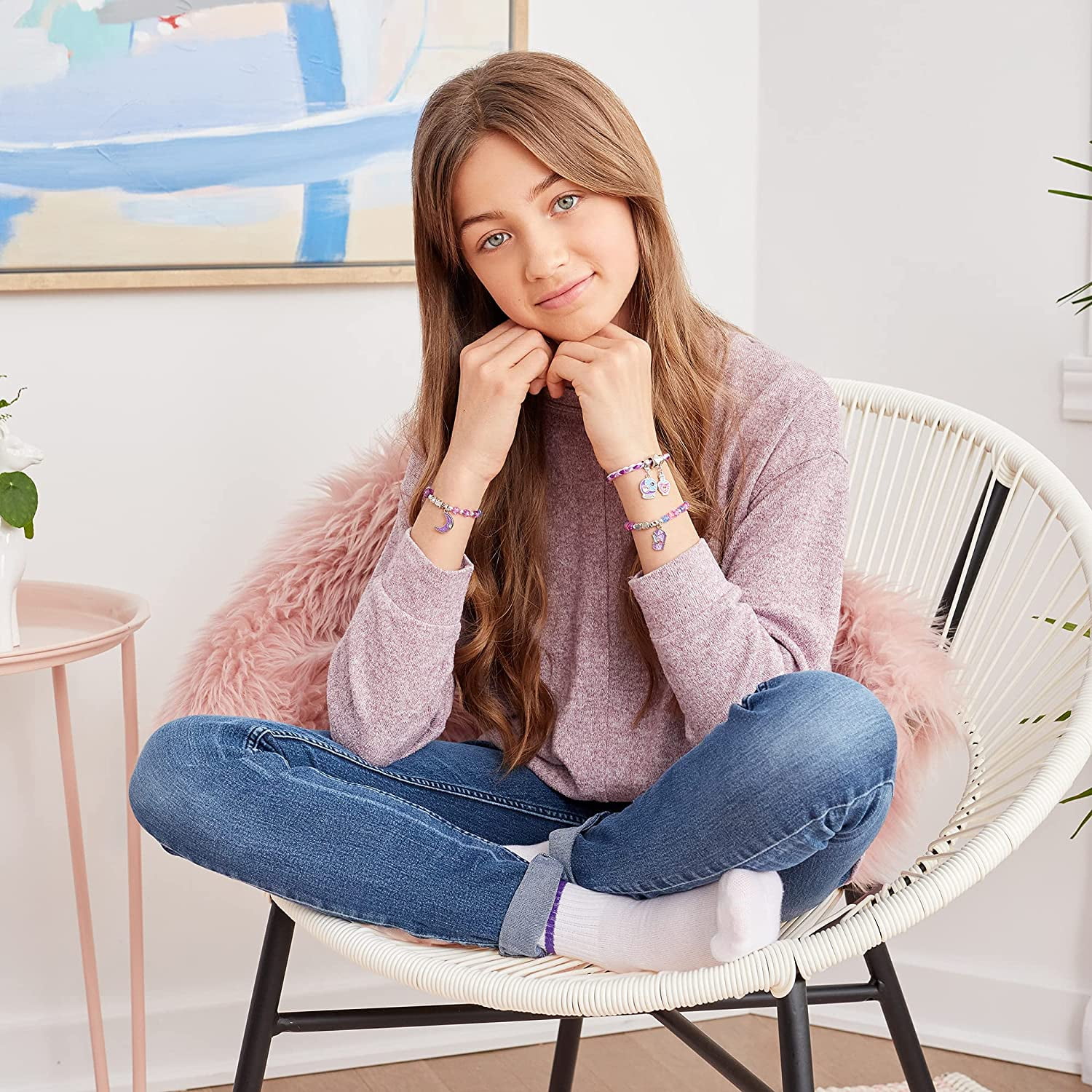 Make 8 magical bracelets with the Make It Real Crystal Dreams: Spellbinding Jewels & Gems Charm Bracelet Making Kit! Take craft day up a notch and make friendship bracelets or cute accessories with hundreds of bright beads and spellbinding charms with Swarovski Crystals. This jewelry making kit comes with everything needed to make 8 mystical bracelets, including a bead tray to keep things organized and simple. Pack up the jewelry making supplies when playtime is over for easy cleanup & storage! Creating their own beautiful jewelry helps young girls develop fine-motor, visual, and tactile-sensory skills – all while having fun and expressing themselves! Safe for ages 8 and up, these personalized DIY charm bracelets make perfect friendship bracelets & cute accessories to show off for any occasion!