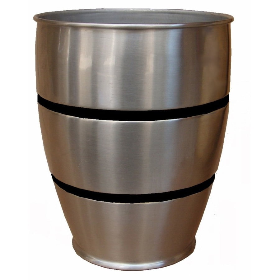 Accent your decor stylishly with this striped waste can. Constructed of brushed metal, it features a black striped design. This sleek waste can matches most decor and is perfect for bedrooms, bathrooms, and even offices. The sturdy and clean design makes it the perfect addition to your home.