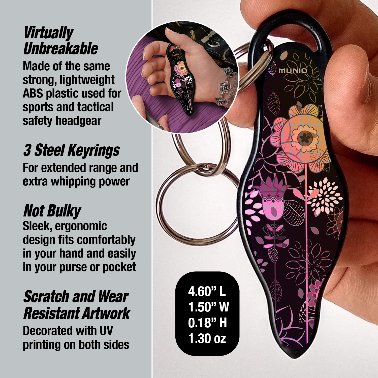The MUNIO collection of Self Defense Kubaton Keychains uniquely combine personal safety with style and offer attractive choices for both women and men. MUNIO can help you disable an attacker by simply striking with the pointed tip and/or whipping with your keys so you can escape safely.