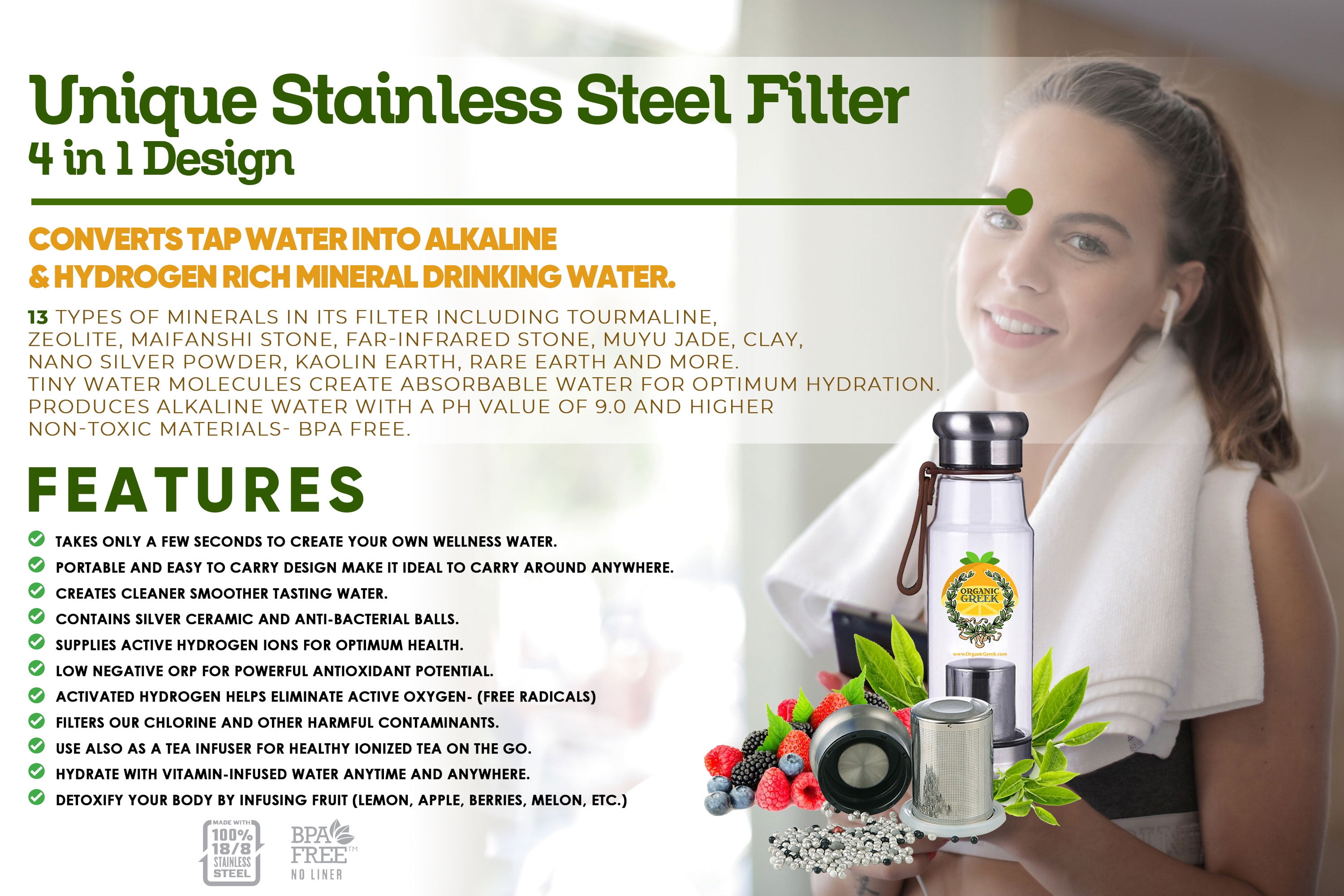 - Use also as a tea infuser for healthy ionized tea on the go.