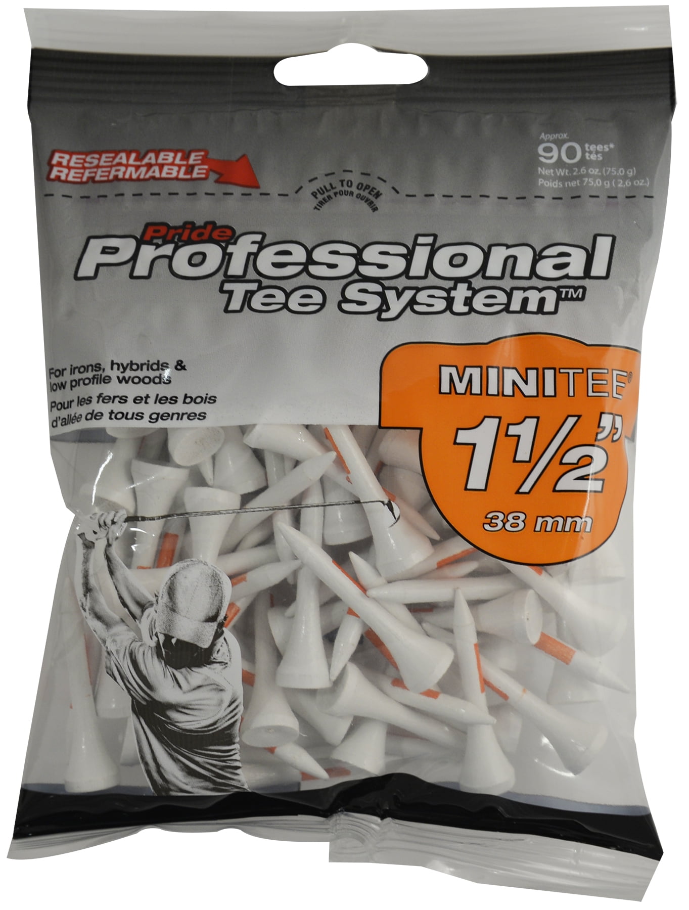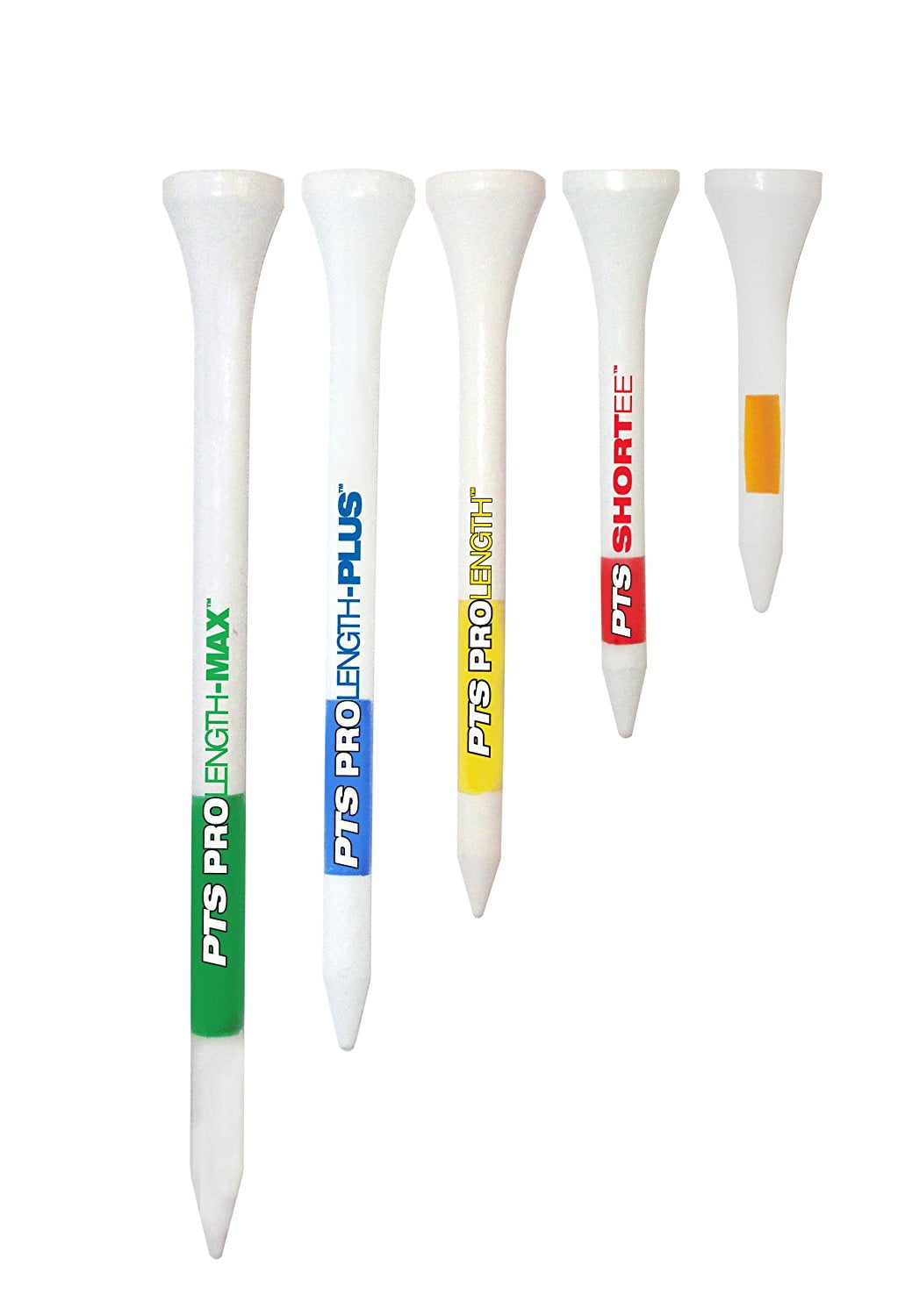 Pride Professional Tee System (PTS) is a proprietary system of printed golf tees that allows for easy identifcation of length and appropriateness for various golf clubs.#1 Tee on the PGA Tour;100% Natural Hardwood;Color bar indicates Tee length;Painted, Printed and Packaged in the U.S.A.;Perfect for irons, hybrids & low profile woods