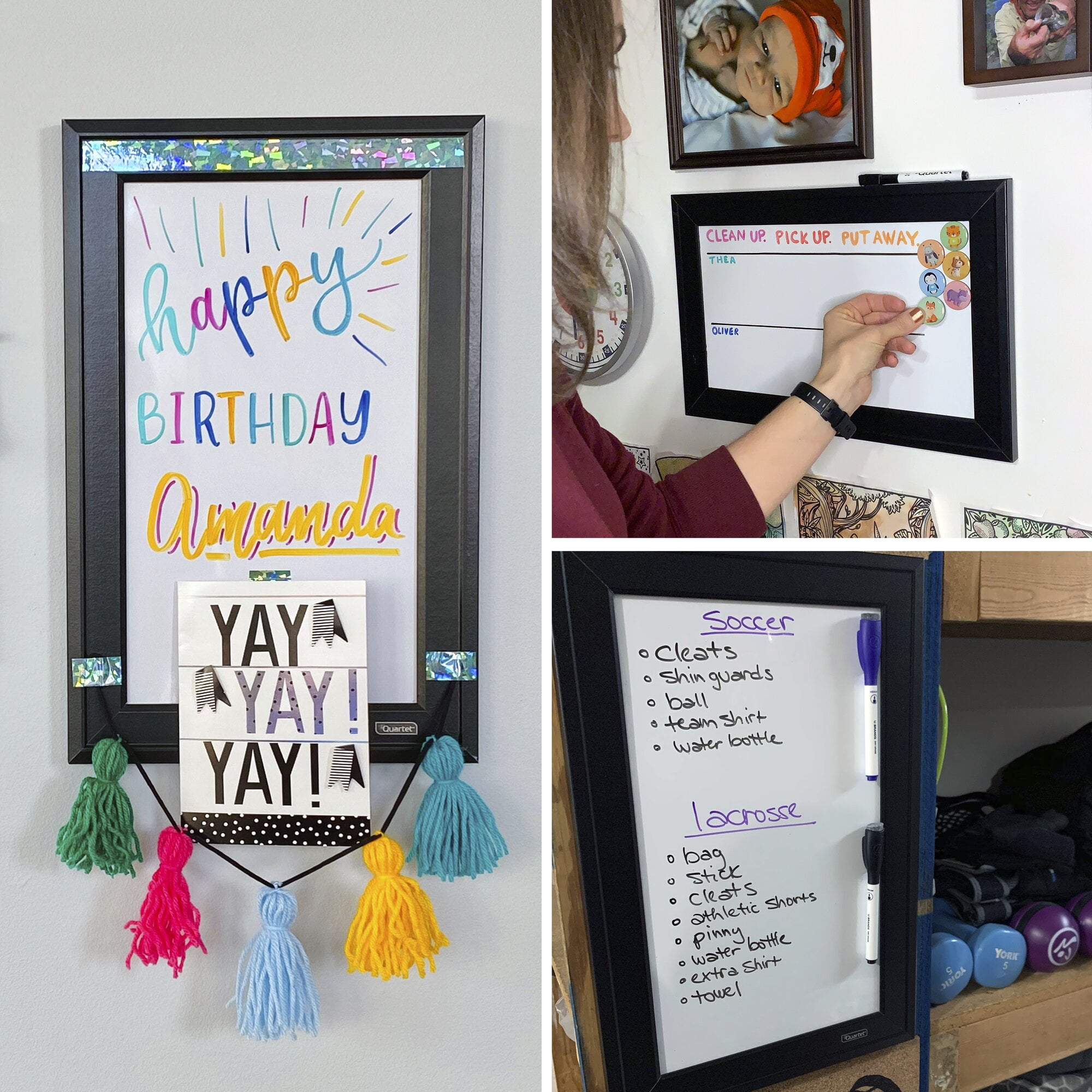 - Use magnets to post photos and more on the magnetic whiteboard surface