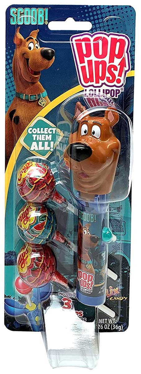 The lollipop keeper that protects your lollipop and keeps its clean and safe. Comes with a delicious Chupa Chups lollipop in each Pop Up. Blister Pack Pop Ups contains three refills. Mixed assortment. Flix Candy Frozen Pop Up Blister Card.Scooby Doo Pop Ups! Lollipop Scooby