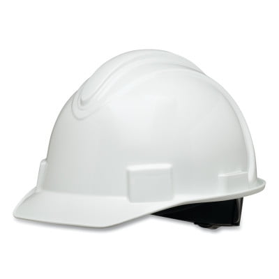 Honeywell North Short Brim Hard Hats Provides a comfortable solution that can be worn all day. Vented (NSB110) and Class E electrical protection non-vented (NSB100) versions available. Made from high-density polyethylene (HDPE). Four-point ratchet suspension. Dual-locking mechanism prevents the hard hat to get loose in normal conditions. Optional 4-point chin strap (NSB100CS). Compatible with Honeywell PPE adapters CP5005 plastic face-shield bracket and 3796VS1 helmet adapter for cap mounted earmuffs Pack of 1Short Brim Hard Hat, 4-Point Ratchet Suspension, Vented, Dark Blue