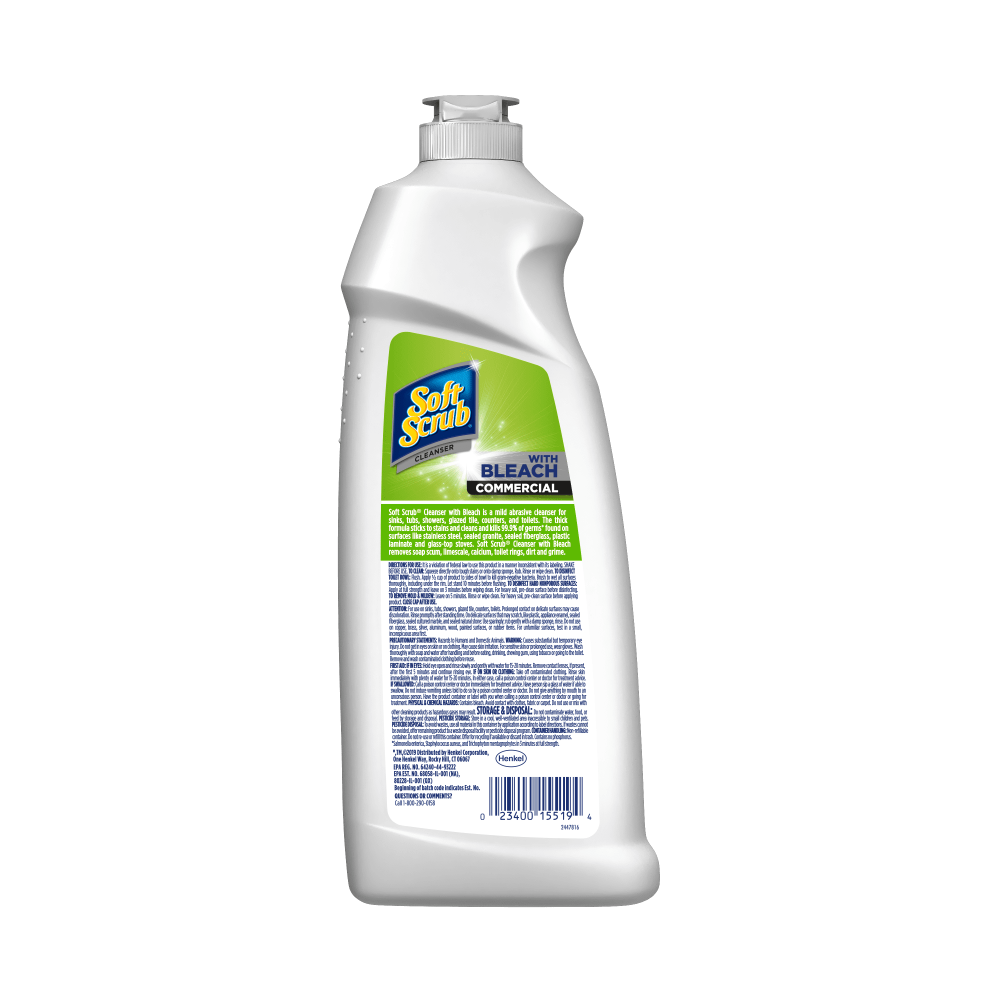 Soft Scrub Antibacterial Cleanser with Bleach is a mild abrasive cleanser for sinks, tubs, showers, glazed tile, counters and toilets. This bleach power formula is tough on stains and gentle on surfaces, so it’s easy to achieve a brilliant, scratch-free shine on most surfaces. The thick formula sticks to stains and cleans and kills 99.9% of germs* found on surfaces like stainless steel, sealed granite, sealed fiberglass, plastic laminate and glass-top stoves. Soft Scrub Disinfecting Cleanser with Bleach is germicidal and removes soap scum, limescale, calcium, toilet rings, dirt and grime. This product is Orthodox Union certified Kosher. *Salmonella enterica and Staphylococcus aureus in 3 minutes at full strength.This product includes one 36-fluid-ounce bottle of Soft Scrub with Bleach Cleanser.