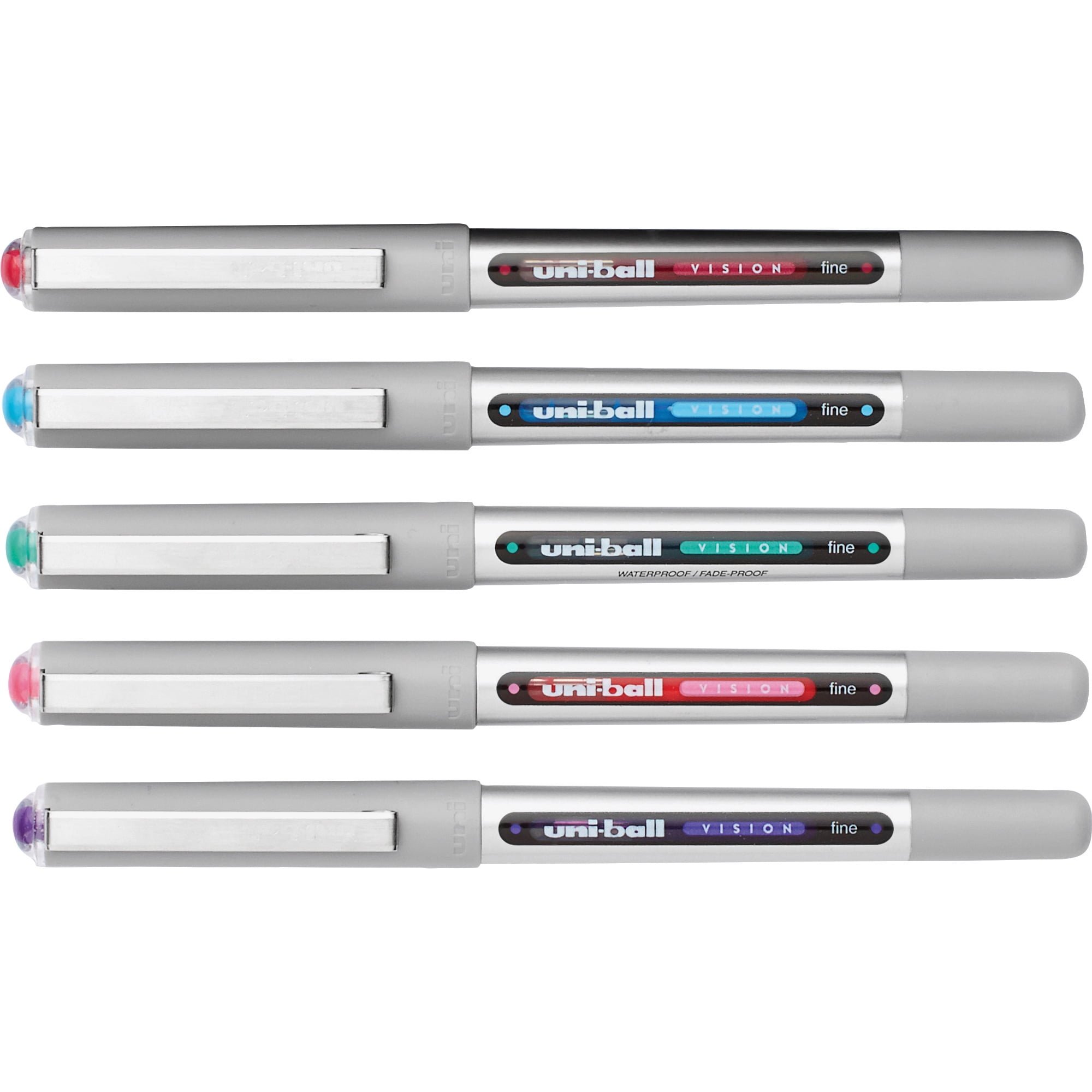 Vision Rollerball Pen features an innovative system that regulates a steady flow of waterproof ink to the point for consistent smoothness and color intensity. Uni Super Ink helps prevent check and document fraud. Solid, stainless steel point is quiet, responsive and won’t bend under pressure. Uncapped pen offers a visible ink supply. Fade-resistant and water-resistant.