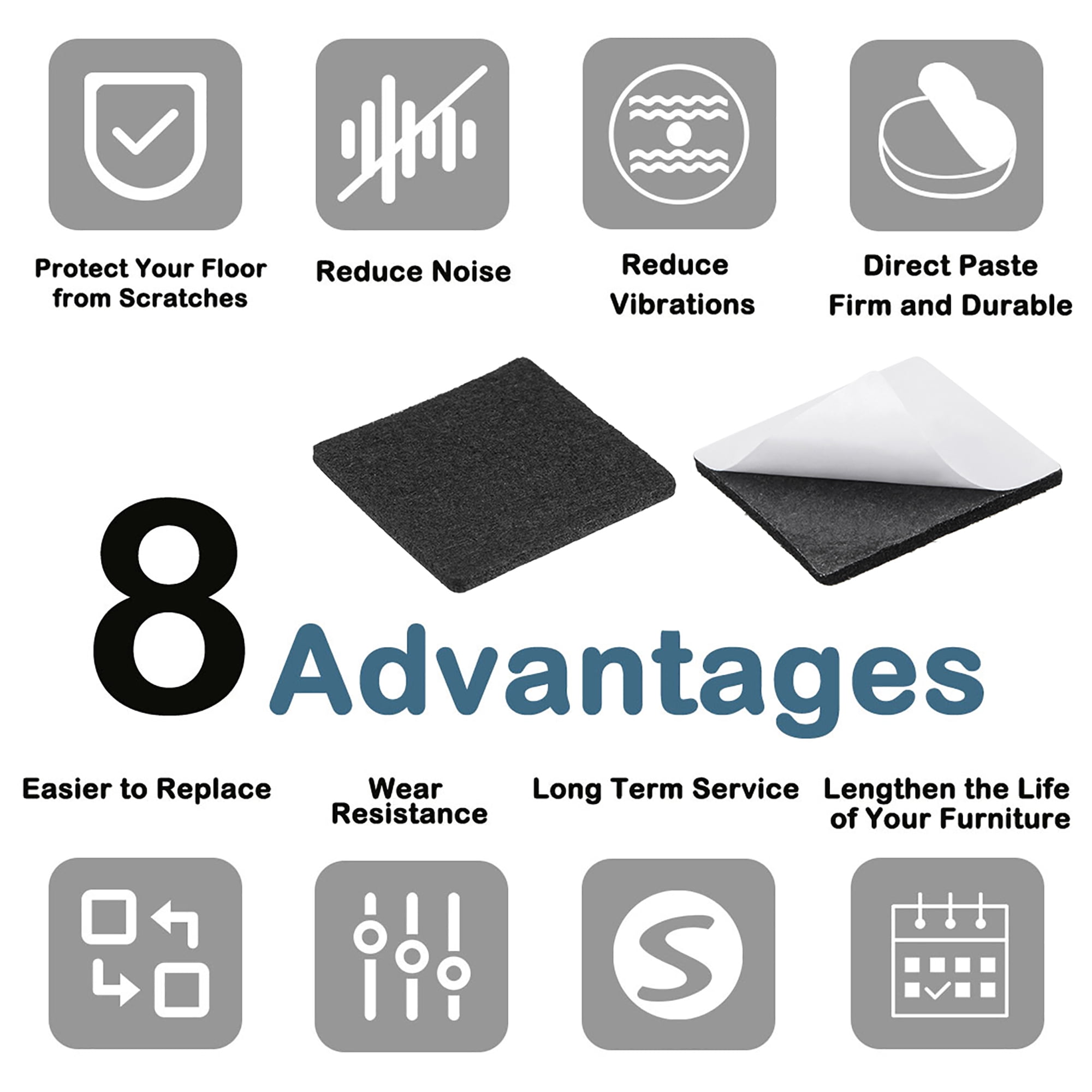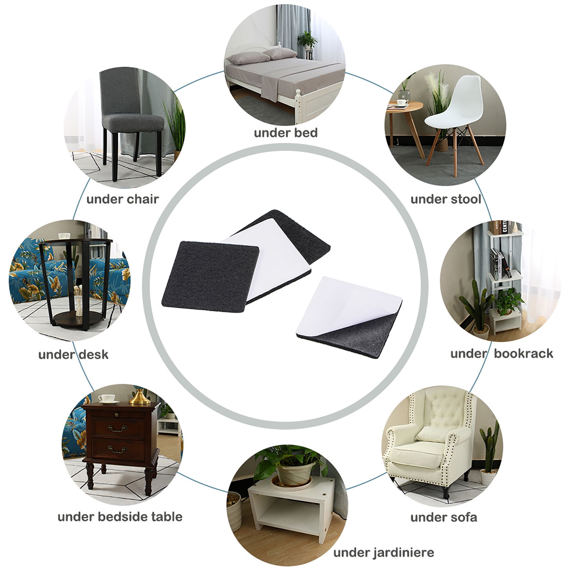 - Our felt pads have a tenacious adhesive which does not allow them to fall off from furniture legs and tightly hold the pads for a long time.