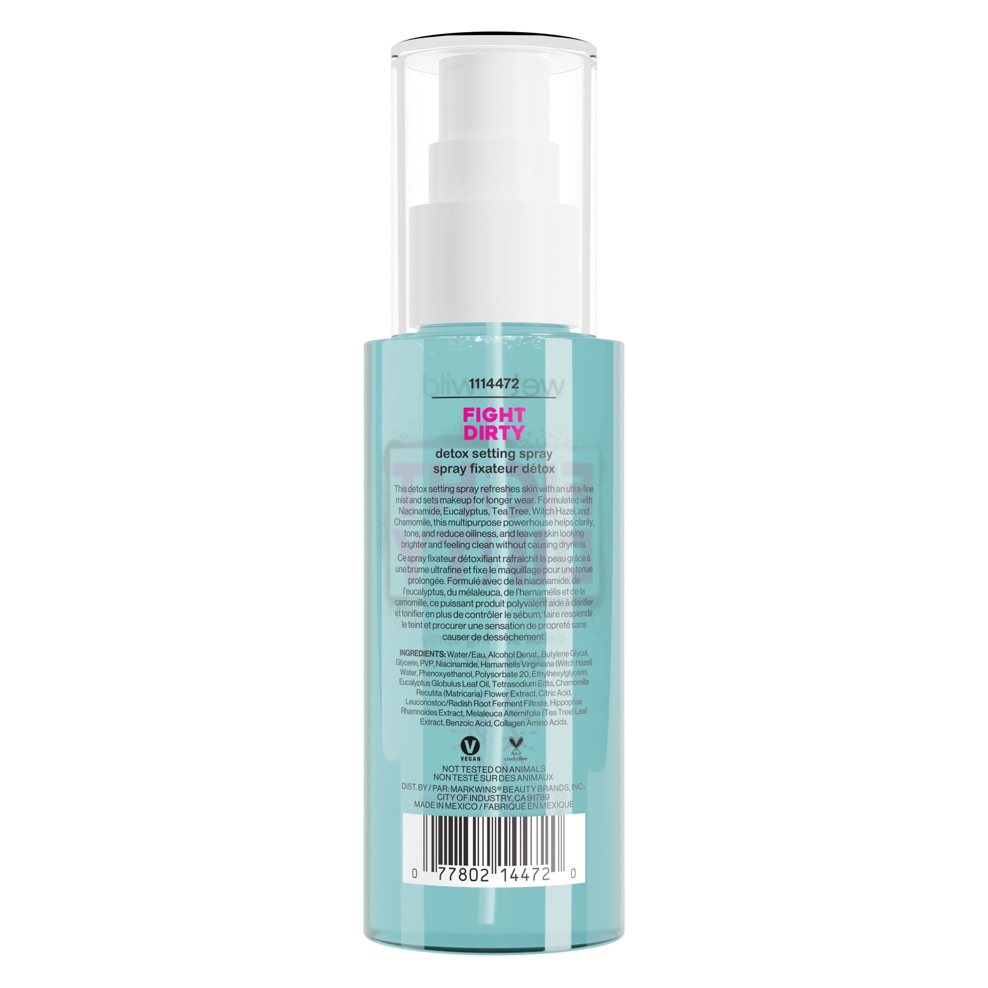 When your makeup isn’t standing up to the wear and tear of the day, it’s time to fight back and fight dirty with wet n wild’s Fight Dirty Detox Setting Spray. Just spray it on over your makeup and the ultra-fine mist sets your makeup while leaving a natural finish. Formulated with a nourishing blend of ingredients known to help clarify and tone the skin, this setting spray helps keep your skin clear and your makeup in place.Gently Sets Makeup: Lock in your look with the help of this ultra-fine mist that sets makeup with a strong hold and a natural finish.