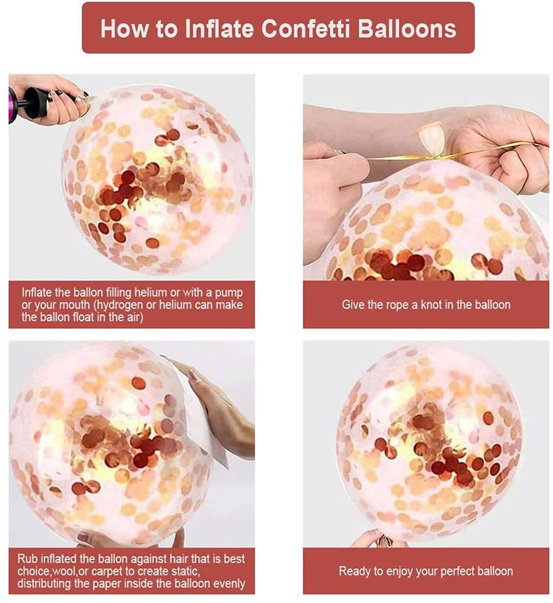 - 【High-quality Birthday Balloons】Rose gold latex balloons are made of high-quality materials, safe and non-toxic. The rose gold confetti balloon is sturdy and durable, so there is no need to worry about safety when using it