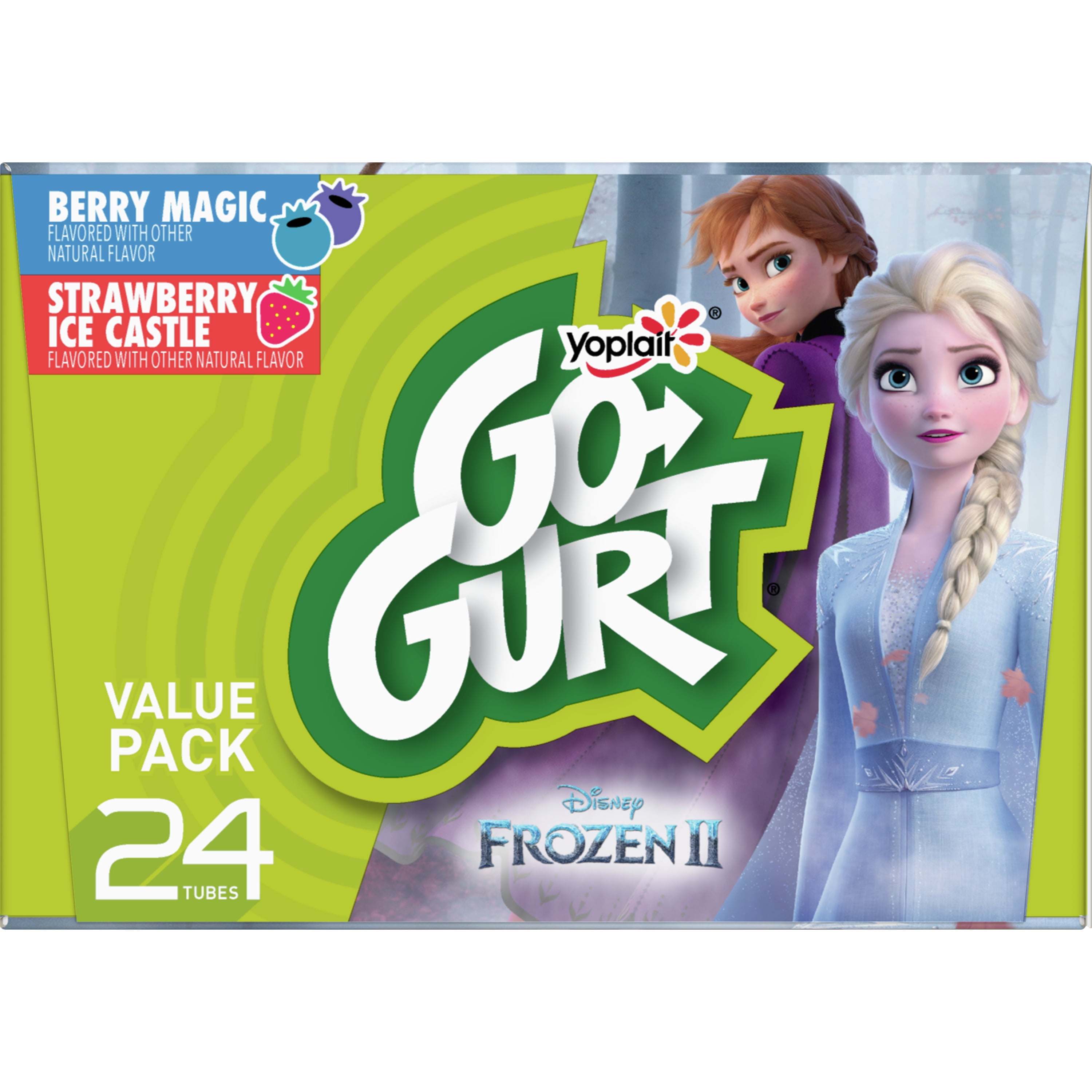 Yoplait Go Gurt variety pack of Berry and Strawberry low fat yogurt tubes is gluten free, a good source of vitamin D and calcium and is made with no high fructose corn syrup, and no colors or flavors from artificial sources. Go Gurt yogurt is perfect for on-the-go breakfast or snack. This box contains 12 tubes of each flavor.