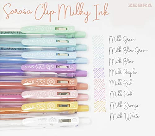 Zebra Sarasa Clip Gel Retractable Pen Set, .5mm, Milk Colors, 8-Colors