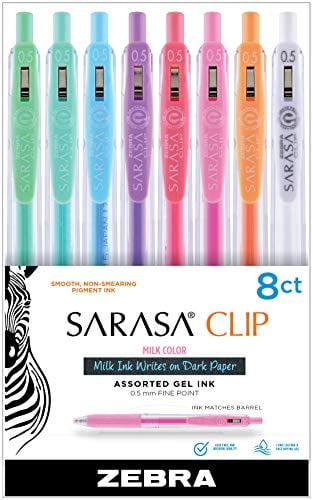 Ideal for journaling, note taking and studying, the Sarasa Clip Pen will help you stay organized and make a lasting impression with archival quality, water-resistant ink. These Sarasa Milk Gel Pens feature softly colored, opaque inks that show up well on light and dark colored papers, including glossy photos. The 8-pen set includes one each of milk blue, red, green, pink, purple, orange, white and blue green.