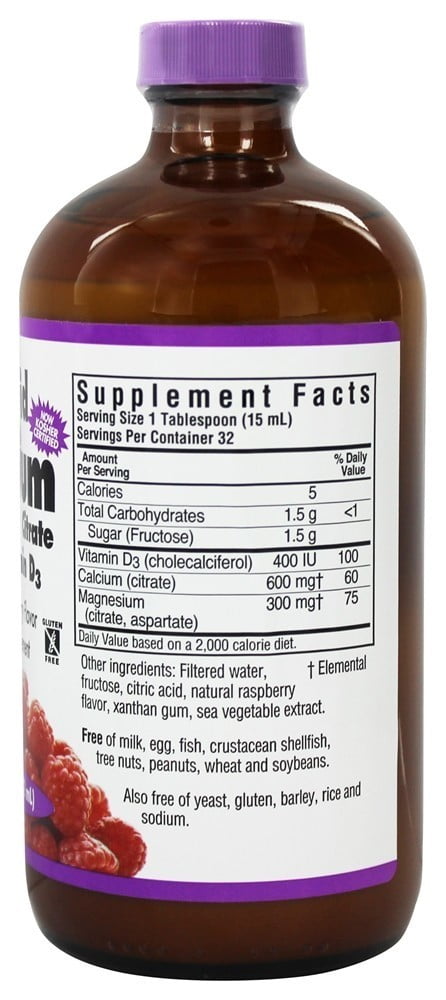 Bluebonnet Nutrition Calcium Magnesium Citrate Plus Vitamin D3 Liquid, Natural Raspberry, 16 Fl Oz