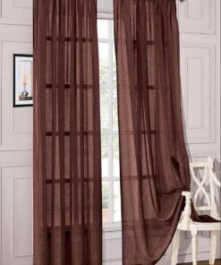 2pc Brown Solid Sheer Voile Window Curtain Set, Two (2) Rod Pocket Panels 55’W x 84’L (Each)