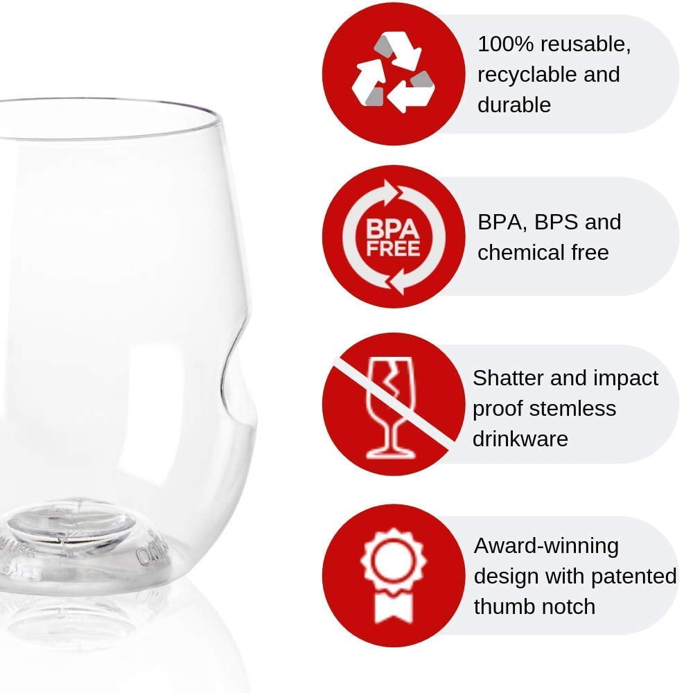 - Dishwasher safe. Toprack. Go anywhere wine glass. Use Everyday. Go Anywhere: Elevate your experience! Thin, flexible, highly designed drinkware that reflects a wine’s color and projects its aromatics much like fine crystal. Govino is safe, practical and beautiful in every indoor & outdoor space of your home. Always look for Govino’s distinctive thumb notch and contoured base. Good design. Reusable. Recyclable. BPA/BPS free. For a complete range of Govino shatterproof products, visit your favorite retailer or Govino.com. International design excellence awards ’10. Silver. Made in the USA.