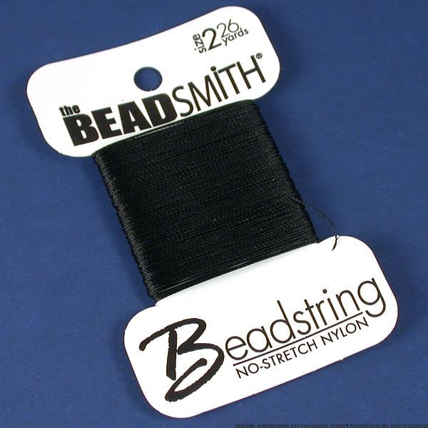 Black Beadsmith NylonBlack Beadsmith Nylon Beading Thread Cord Sz 2 26yds This is a new card of black #2 Beadsmith nylon bead cord Great for stringing beads and pearls and making bracelets and necklaces It measures approximately 26 yards (23.77 meters) long