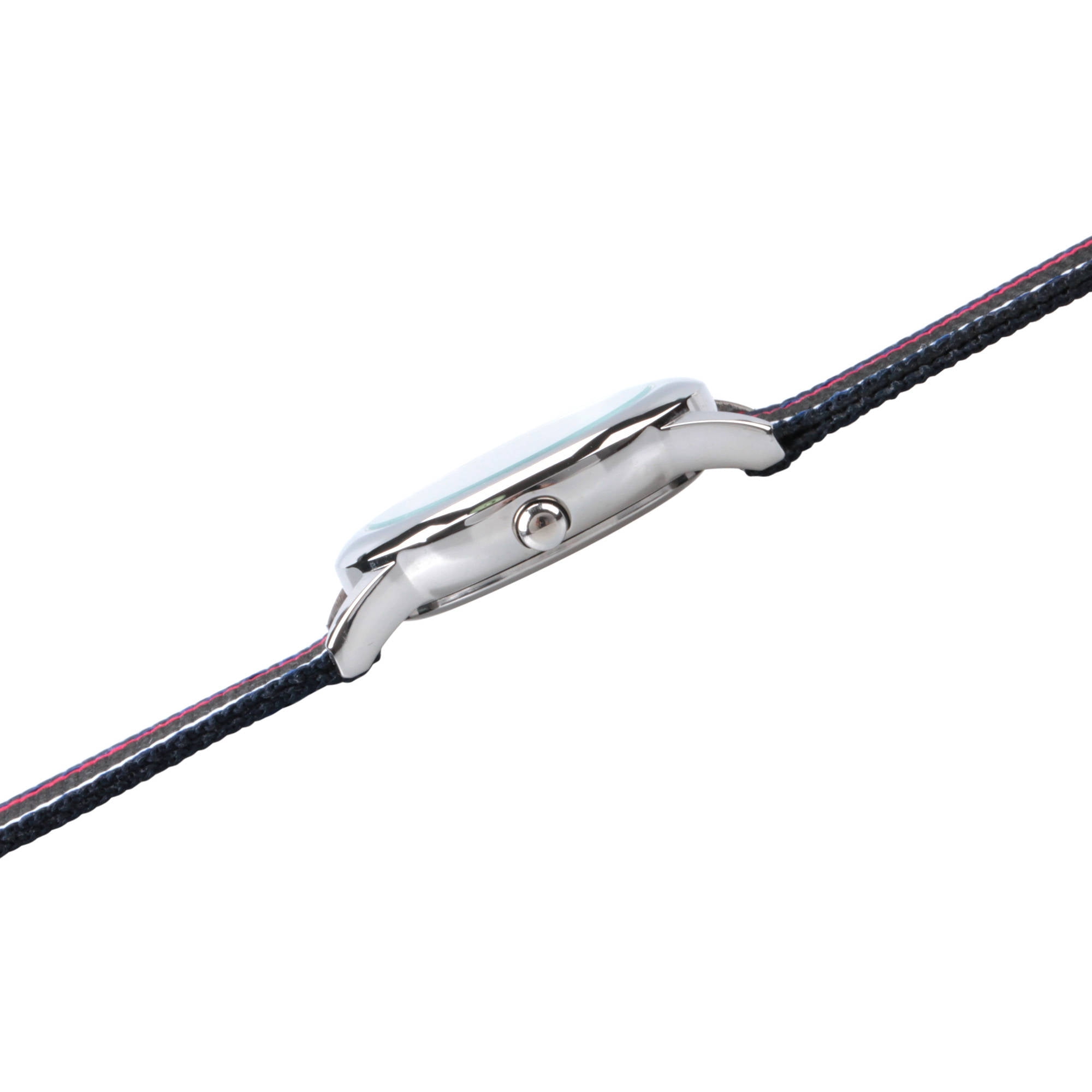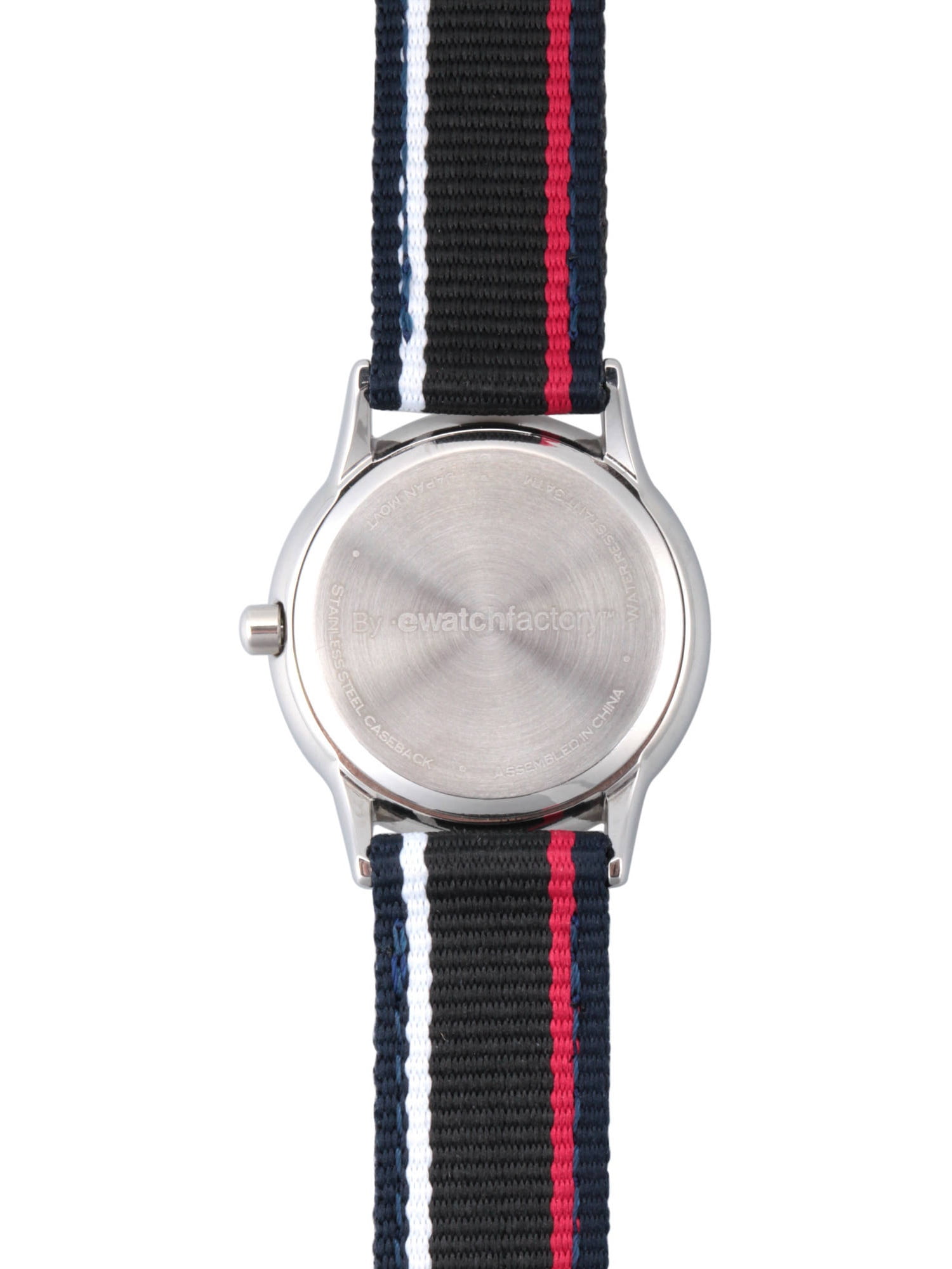 This Red Balloon Boys’ Stainless Steel Watch features a black nylon strap.