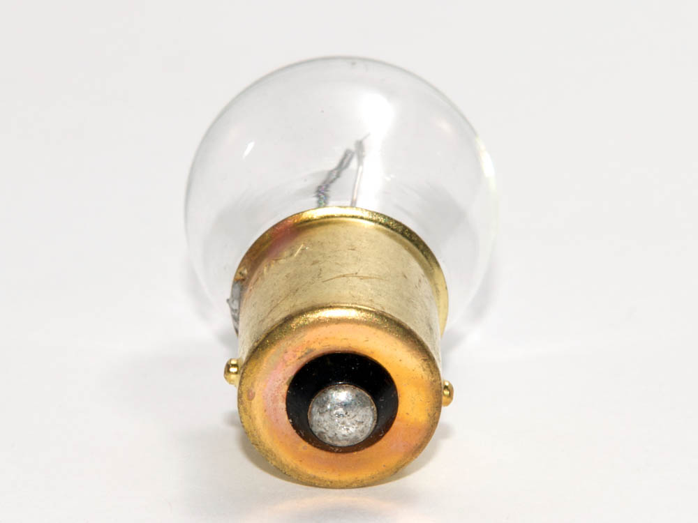 CEC Industries brand miniature lamp. 26.9 Watts and 12.8 volts. S-8 size and shape, single contact bayonet base.