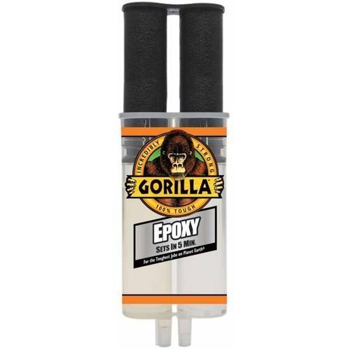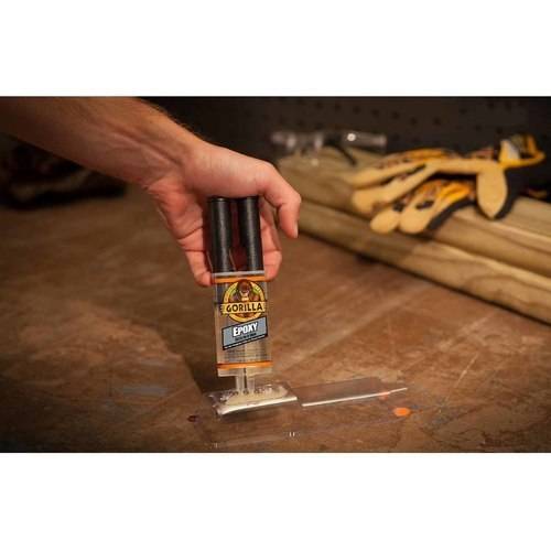 Build, create and repair with Gorilla Epoxy. It takes performance to a whole new level, the Gorilla tough way. It comes in a convenient 0.85 oz tube that is easy to dispense and use. This syringe is designed to dispense evenly and includes a cap for multiple uses. The gap-filling epoxy dries clear and creates a strong, long-lasting bond for household and automotive repairs alike. The two-part, gap-filling formula easily bonds steel, aluminum, wood, ceramic, tile and much more. This epoxy adhesive is non-toxic once cured and is solvent resistant. It comes in a container with seperate barrels of resin that keep the epoxy from hardening until you complete your project. Gorilla Epoxy is an essential tool for carpenters and do-it-yourself weekend handymen.