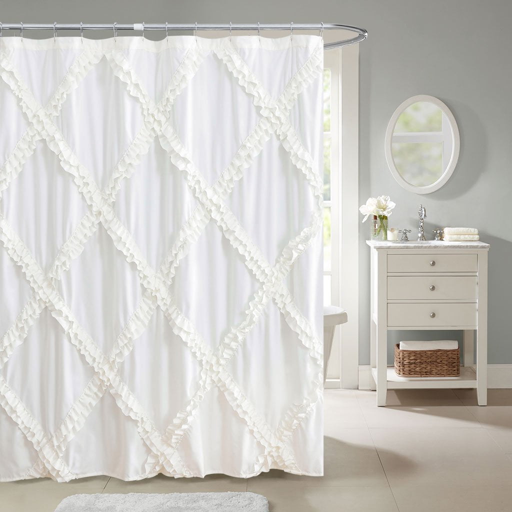 HIG Shabby Chic Double Ruffle Shower Curtain, Brushed Microfiber, Ivory, 72′ x 72′