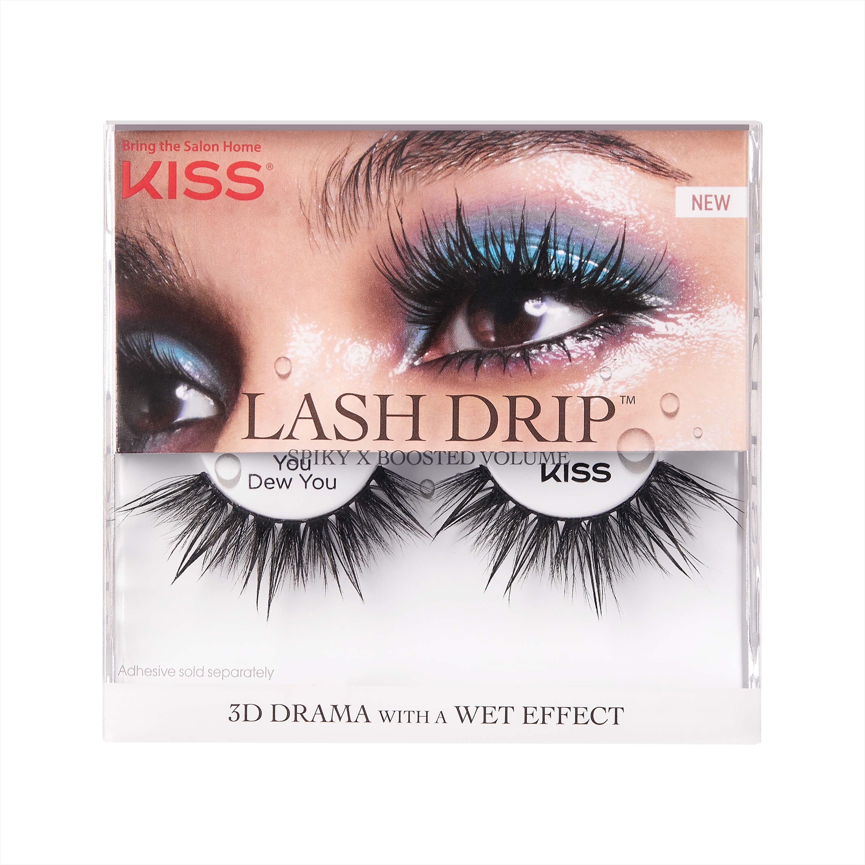 KISS Lash Drip in style ‘You Dew You’ features multi-length long and short lashes with spiky tips and boosted volume. Experience the drip effect with the on trend wet look lashes that will instantly give you a dewy glam look. These Strip lashes flatter all eye shapes and cosmetic looks. With 3D Drama and a hydrated effect for thicker, bolder & darker lashes, these are the best false eyelashes for an Instagram lash look.