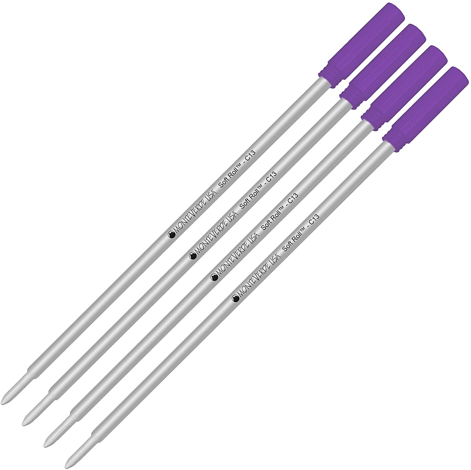 - 4 Pack – Monteverde® Soft Roll™ Ballpoint C13 Paste Ink Refill Compatible with most Cross® Style Ballpoint Pens – Purple (Medium Tip 0.7mm)