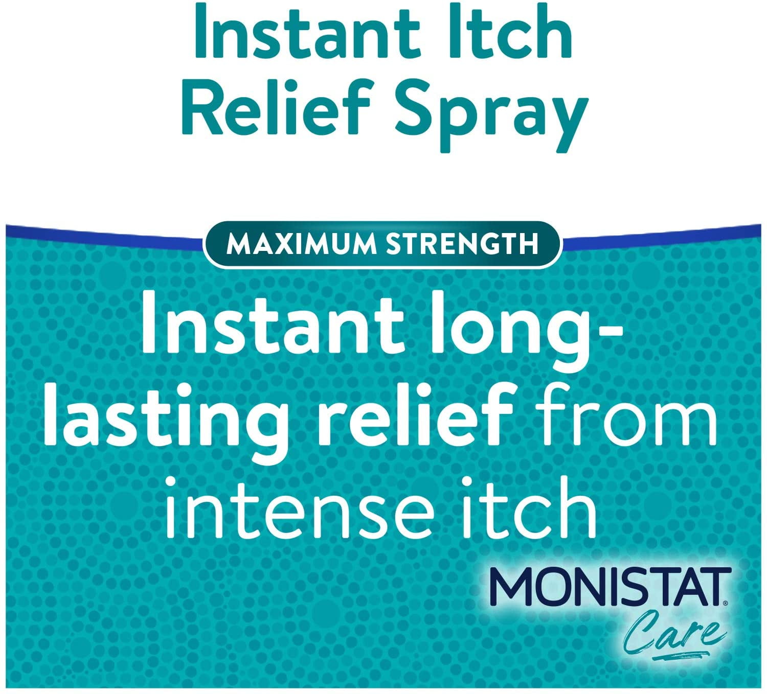 Monistat Instant Itch Relief Spray cools, relieves, soothes, and provides long lasting relief from intense itch associated with irritating vaginal conditions, such as yeast infections, period, perspiration, and clothing. Monistat Instant Itch Relief Spray is a maximum strength formula with 20 percent benzocaine that is paraben free. From time to time, women may experience vaginal yeast infections, itching and irritation, odor, chafing, razor burn, and discharge. Monistat has a range of products to treat vaginal yeast infections, provide symptom relief and help with other feminine health needs. Get instant relief from intense feminine itch with Monistat, the #1 Gynecologist recommended brand for vaginal itch.
