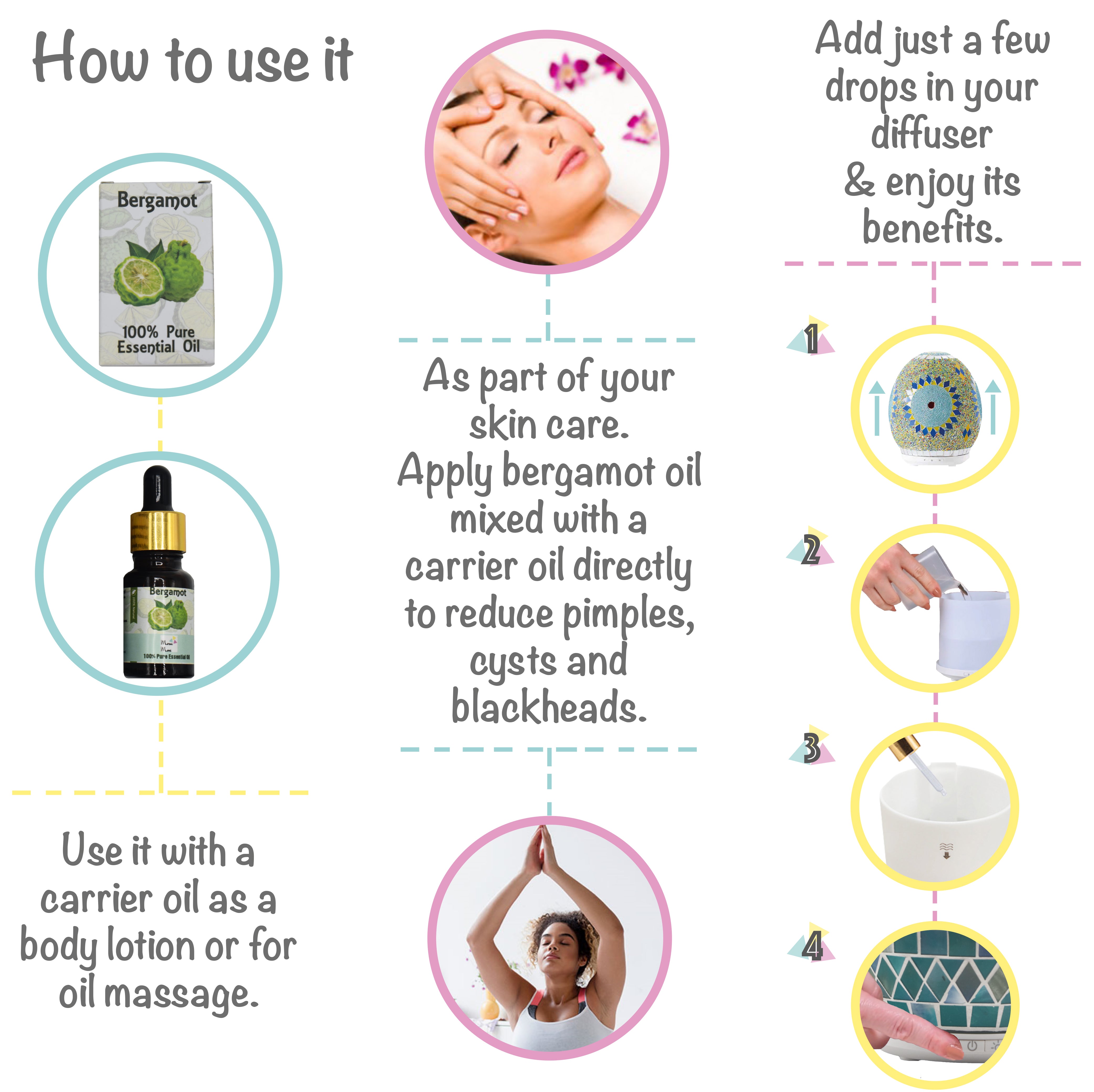 - Is perfect for an invigorating massage, add a few drops to the body lotion of your preference for it.