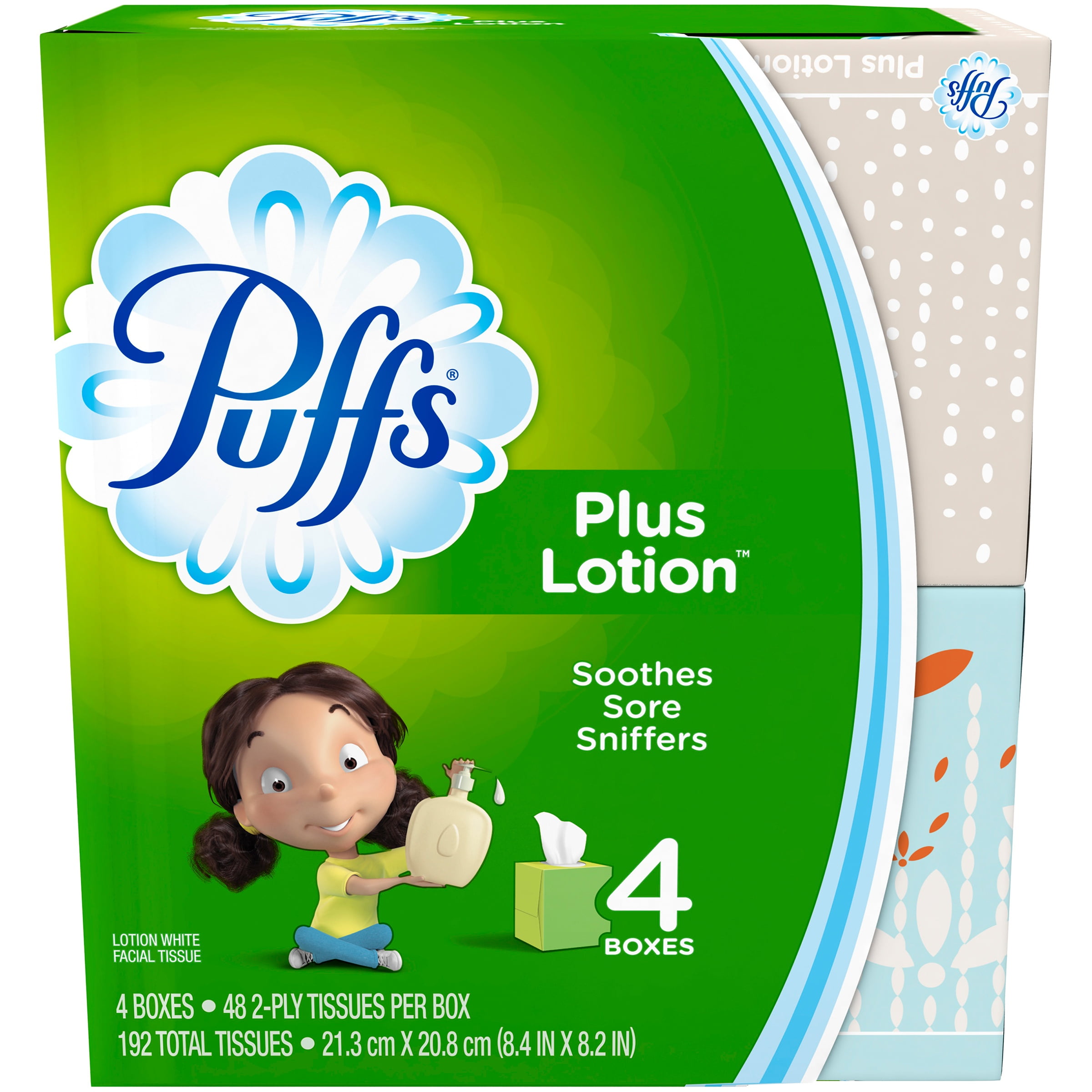 - Puffs softest, most cushiony tissue, with a touch of lotion, to help protect your nose; Puffs Plus Lotion helps soothe irritated noses by locking in moisture better than regular tissues
