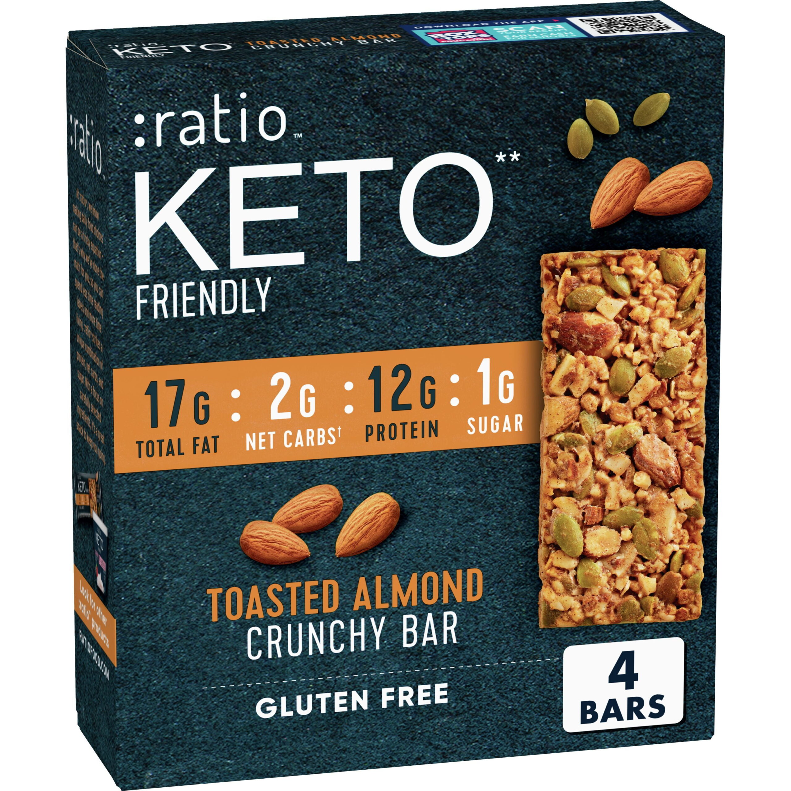 :ratio KETO Friendly Crunchy Bars, Toasted Almond, Gluten Free Snack, 4 ct