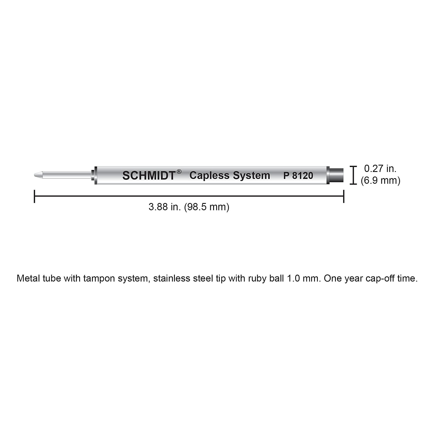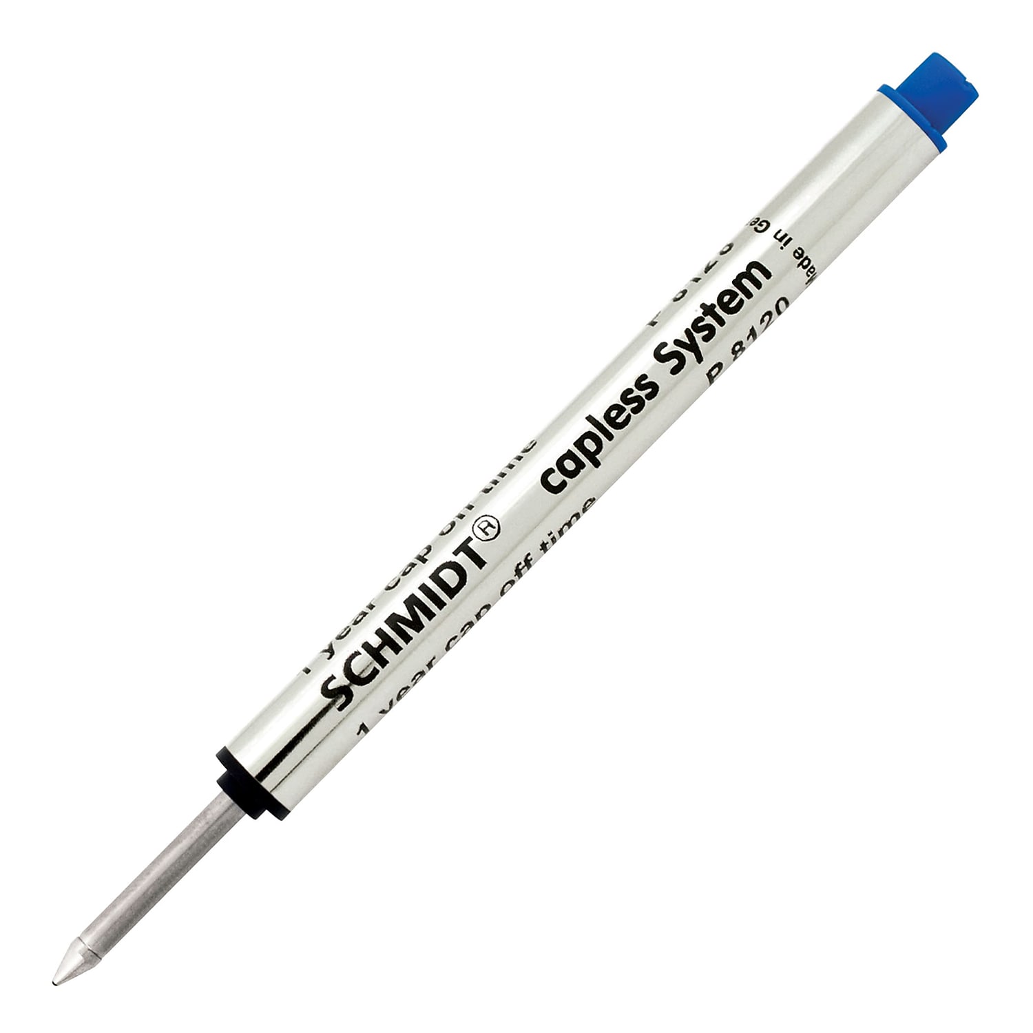 Schmidt P8120 Short Version Capless Rollerball refill. This refill is 3.88" long and features a 1.0mm Broad Point. Schmidt Capless System is newly developed for the most smooth and elegant writing. This system combines the individual writing character of a fountain pen with the problem-free handling comfort of a ball pen.