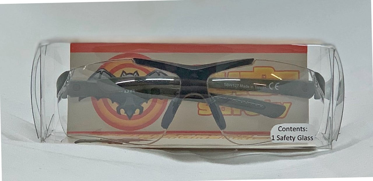 Solar Bat Eye Protection SBW127 has the outdoorsman’s eyes protected no matter what the Sport or outdoor activity. Nose pads and temples are TCG for ultimate grip and Comfort. Lenses are optical quality polycarbonate for the ultimate in eye protection and durability. Lenses have an anti-scratch coating on both the front and back surfaces and wrap around the wearer’s face for protection from all angles. These Unisex Safety Glasses fit well on average to large Adult head sizes and average to wide size nose.