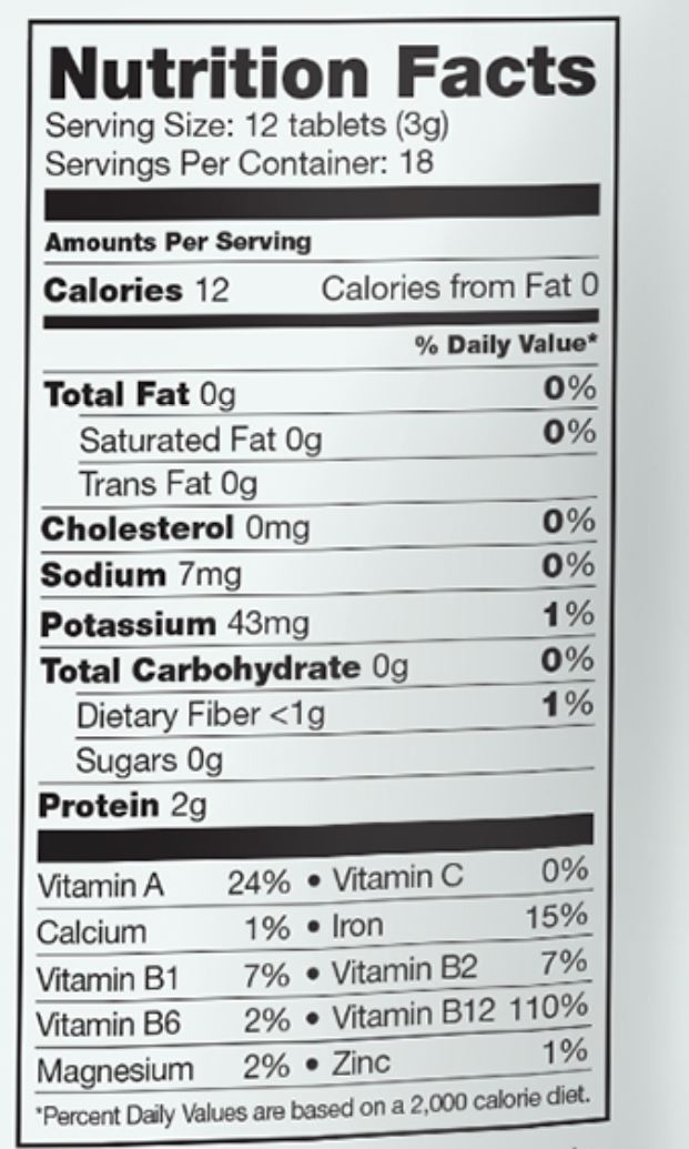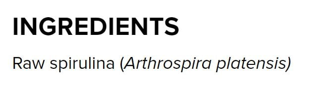 - Ingredients: Raw spirulina (Arthrospira platensis)