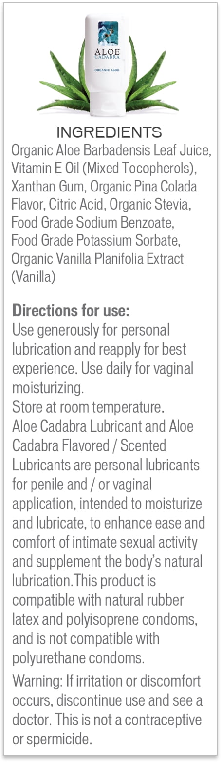 Aloe Cadabra Pina Colada Flavored Personal Lube Edible Lubricant for Men, Women & Couples