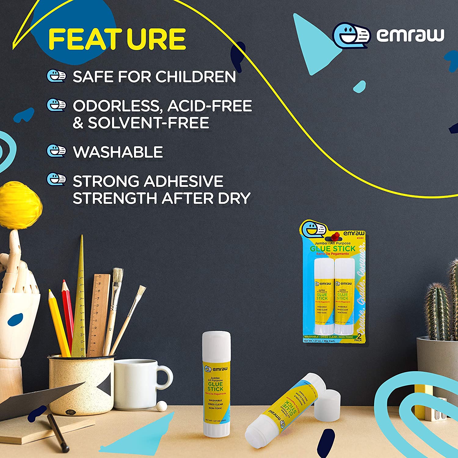 All Purpose School 36g / 1.27 Oz Jumbo Glue Sticks Washable Used for Paper, Photos, Fabric Perfect for School, Home, Office, School Projects and Craft – by Emraw (4 Glues – 2 Packs of 2)